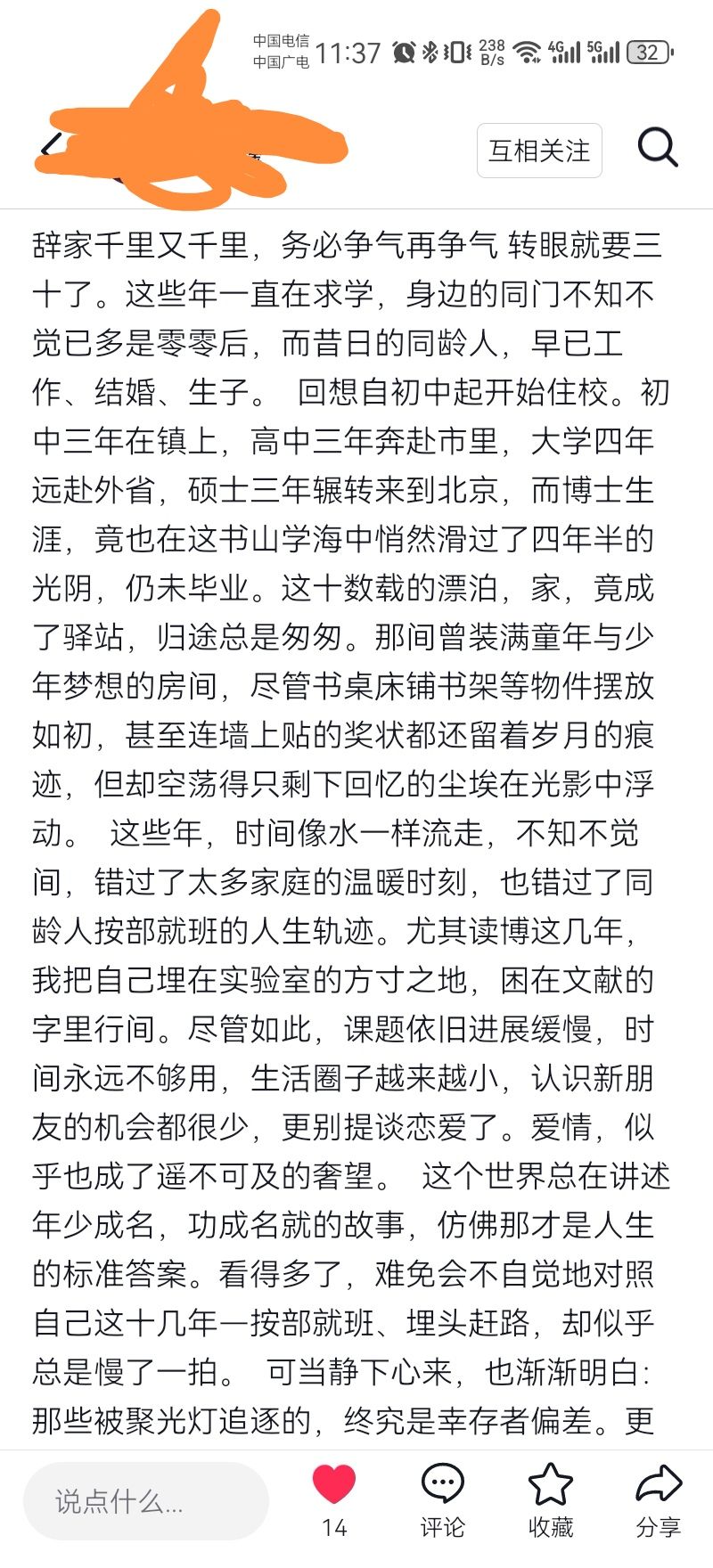今天被告知在原高校读博的一位师兄,预计今年毕业,论文盲审送出后,一直担心盲审过不了,8月底突发心梗去世了。