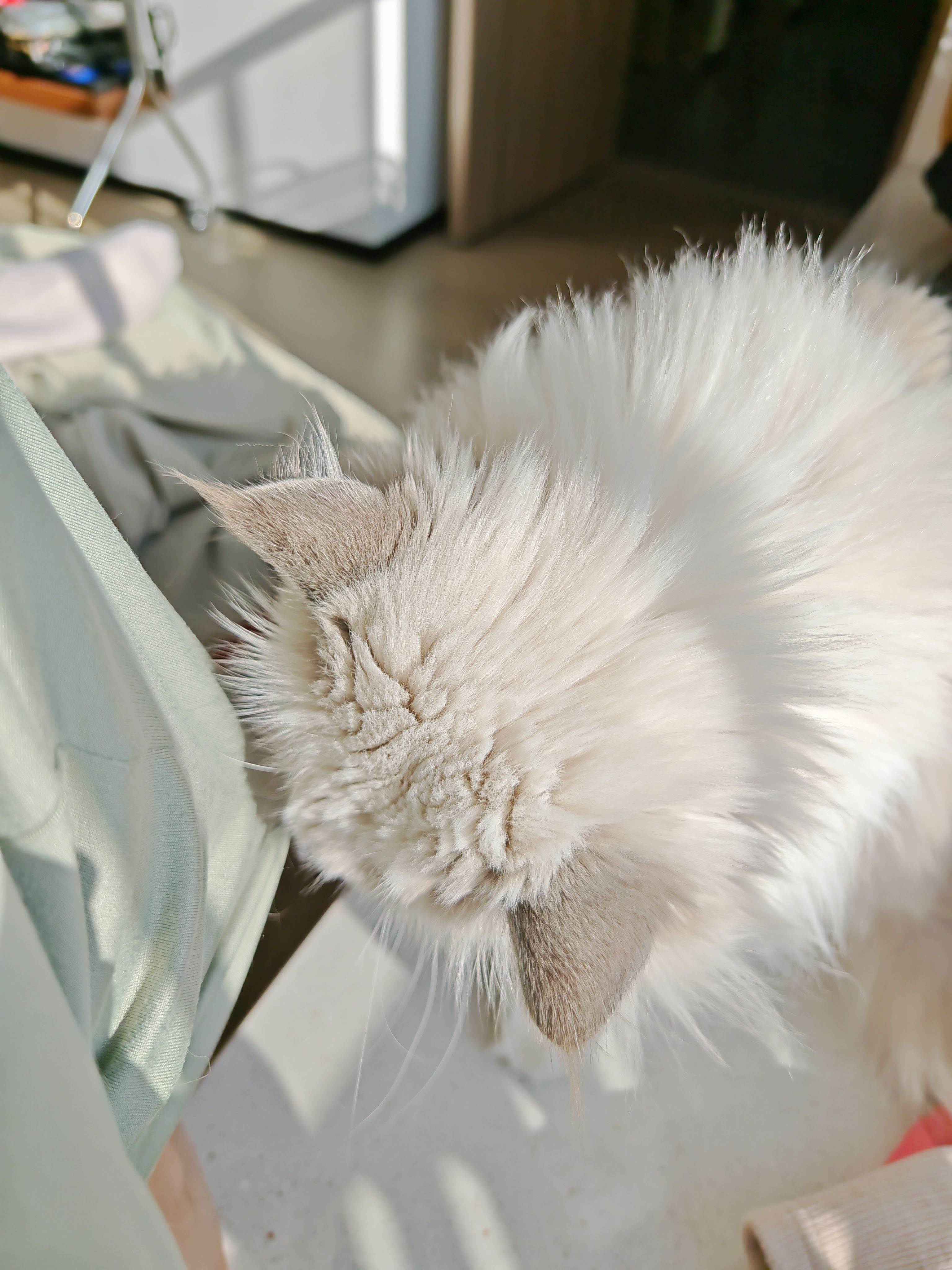 科学的尽头是玄学,果然就是在那家人主卧的飘窗上的窗帘后头躲着晒太阳呢!