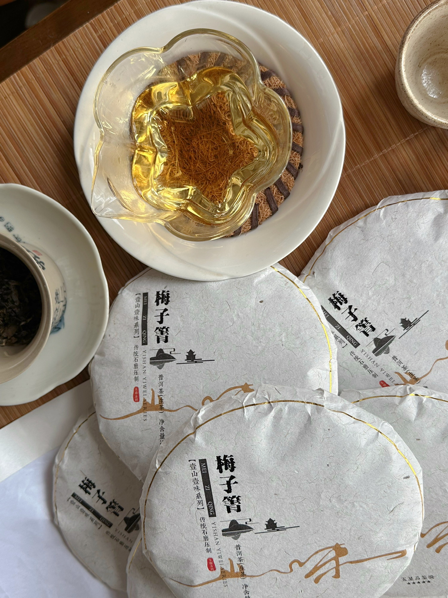 8、第四泡跟上一泡差不多。第五泡的苦底出来了,前四泡都感觉不到苦底;甜度下降不少,不甜了,喝起来是:涩感大于苦底大于甜度。这茶内含物质适中,不算很丰富的那种。