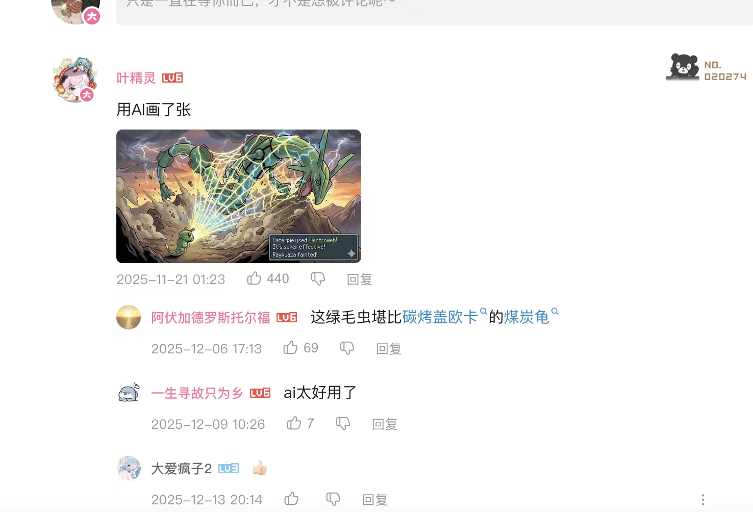22 年看过的视频,最热门的评论是 25 年底 ai 生成图。绿毛虫电网打死烈空座是真的,ag 老师你敢不敢站出来给绿毛虫道歉