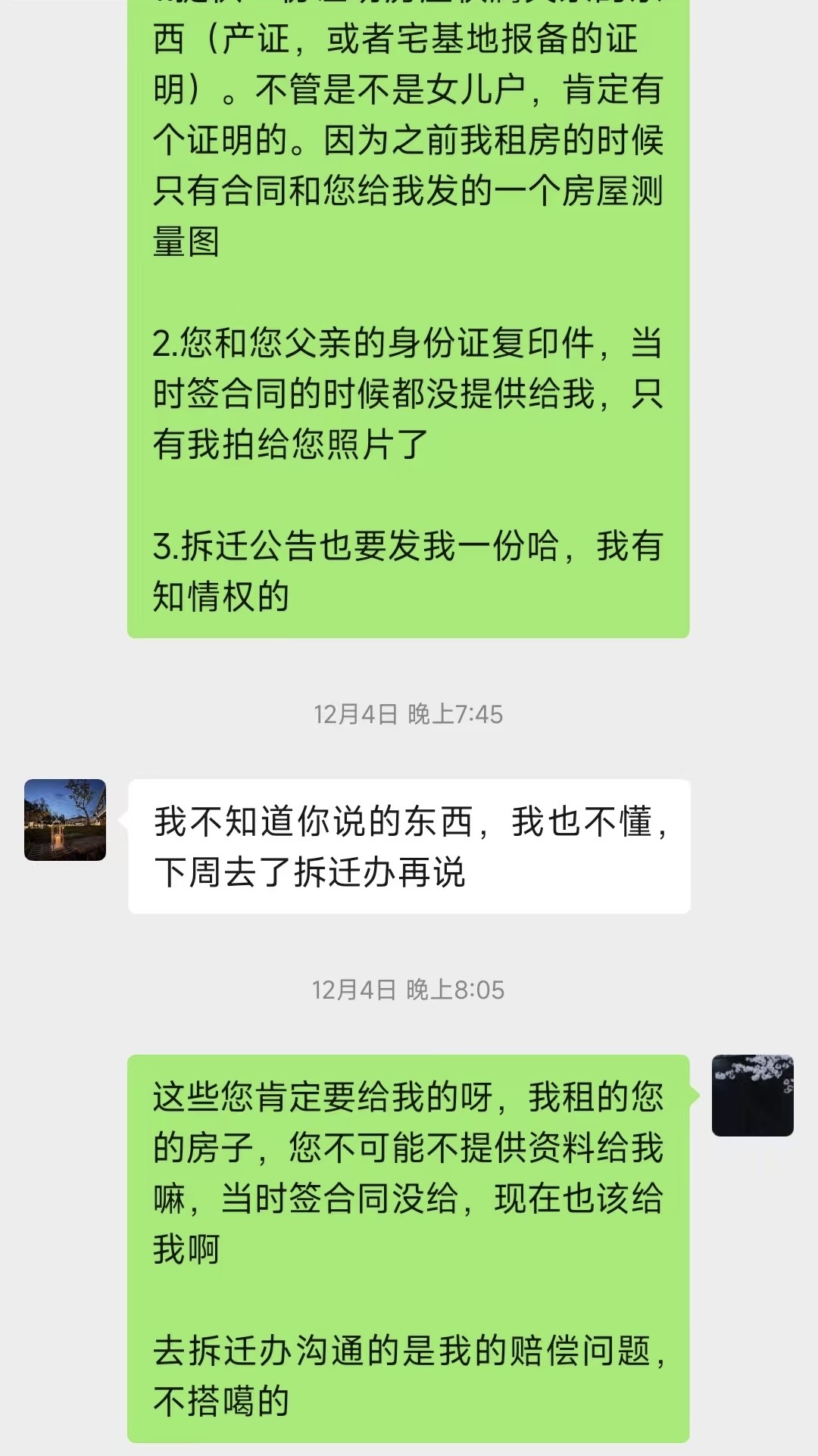 最近在找房东沟通拆迁的问题,房东一直在躲着,之前找我要房租的时候可积极了😂