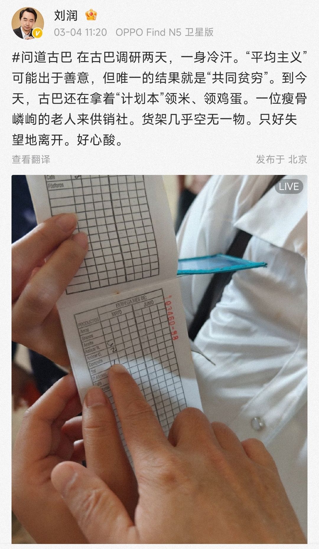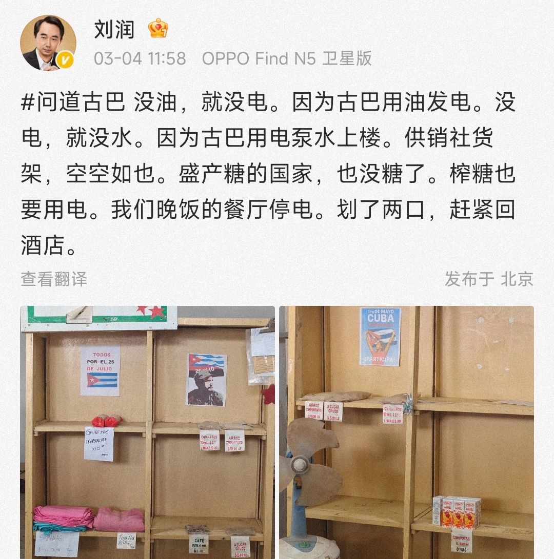 今天又看到刘润老师去古巴的见闻,空旷的货架,还在凭粮票配给生存的人们。