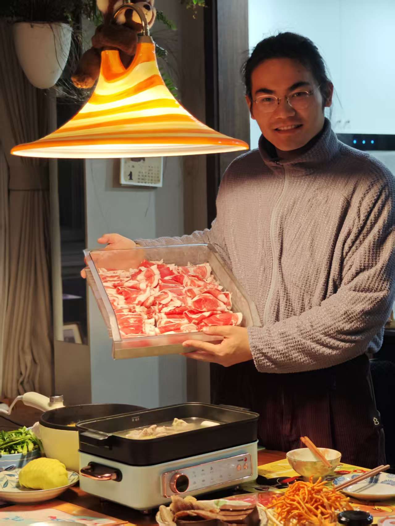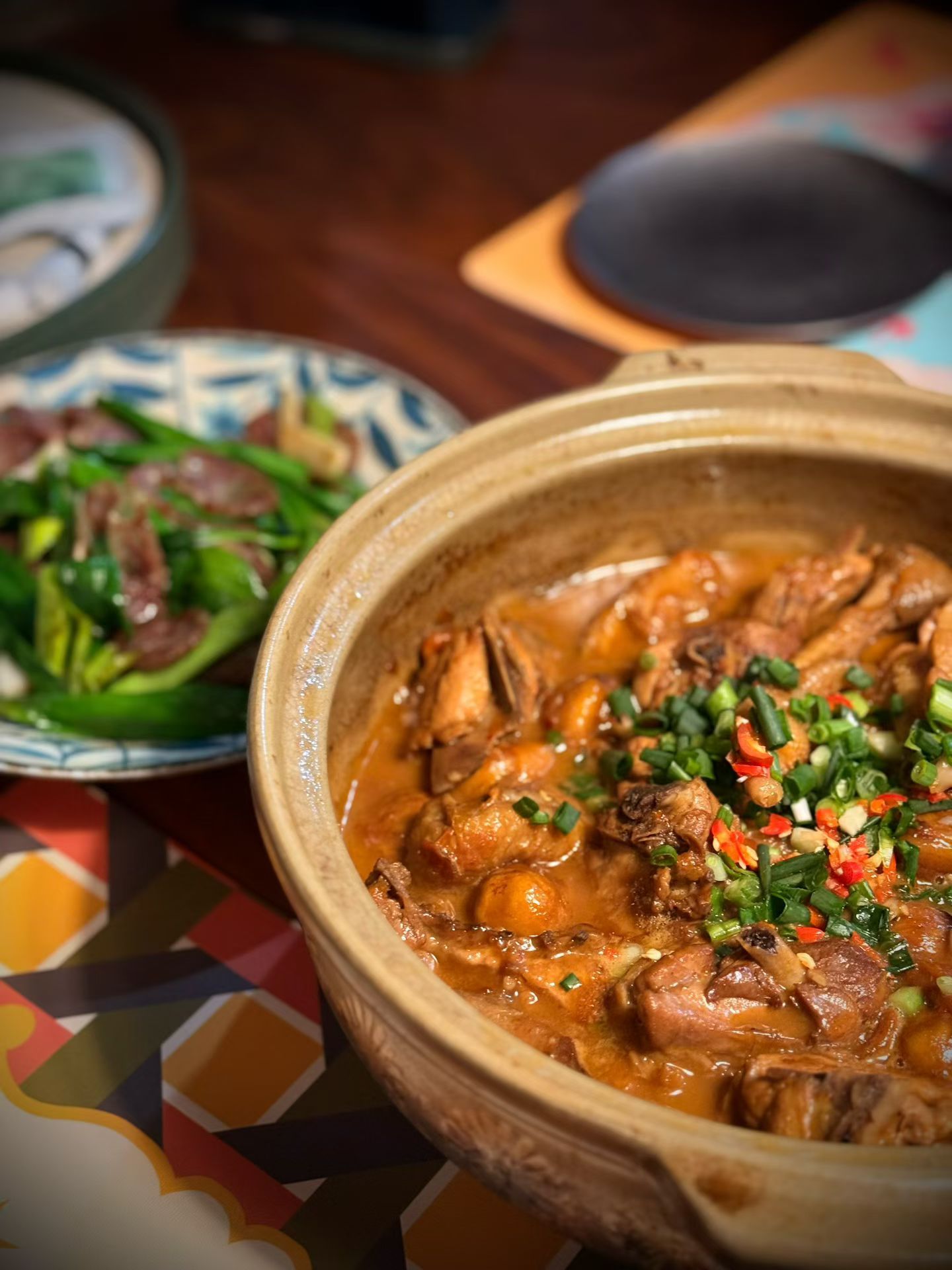 肉食备了牛腩、吊龙、扇骨、猪排、土鸡还有腊肠等,更多以炖菜为主暖乎乎。