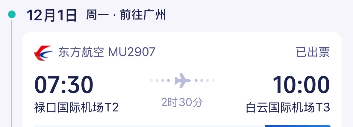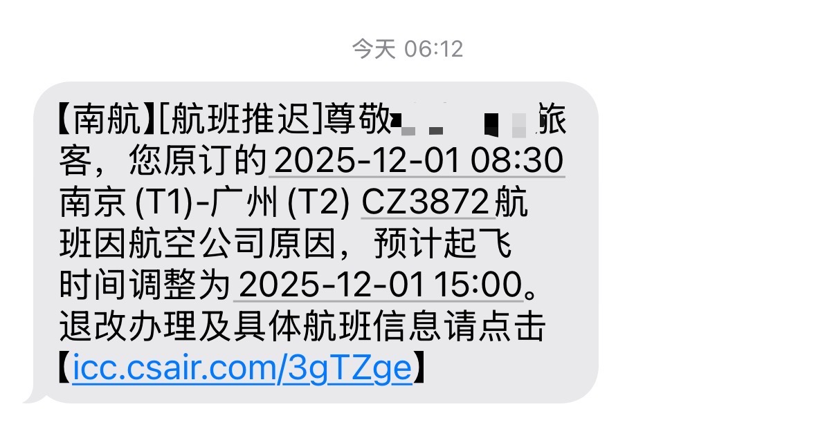 8:30起飞,6:12收到航变信息