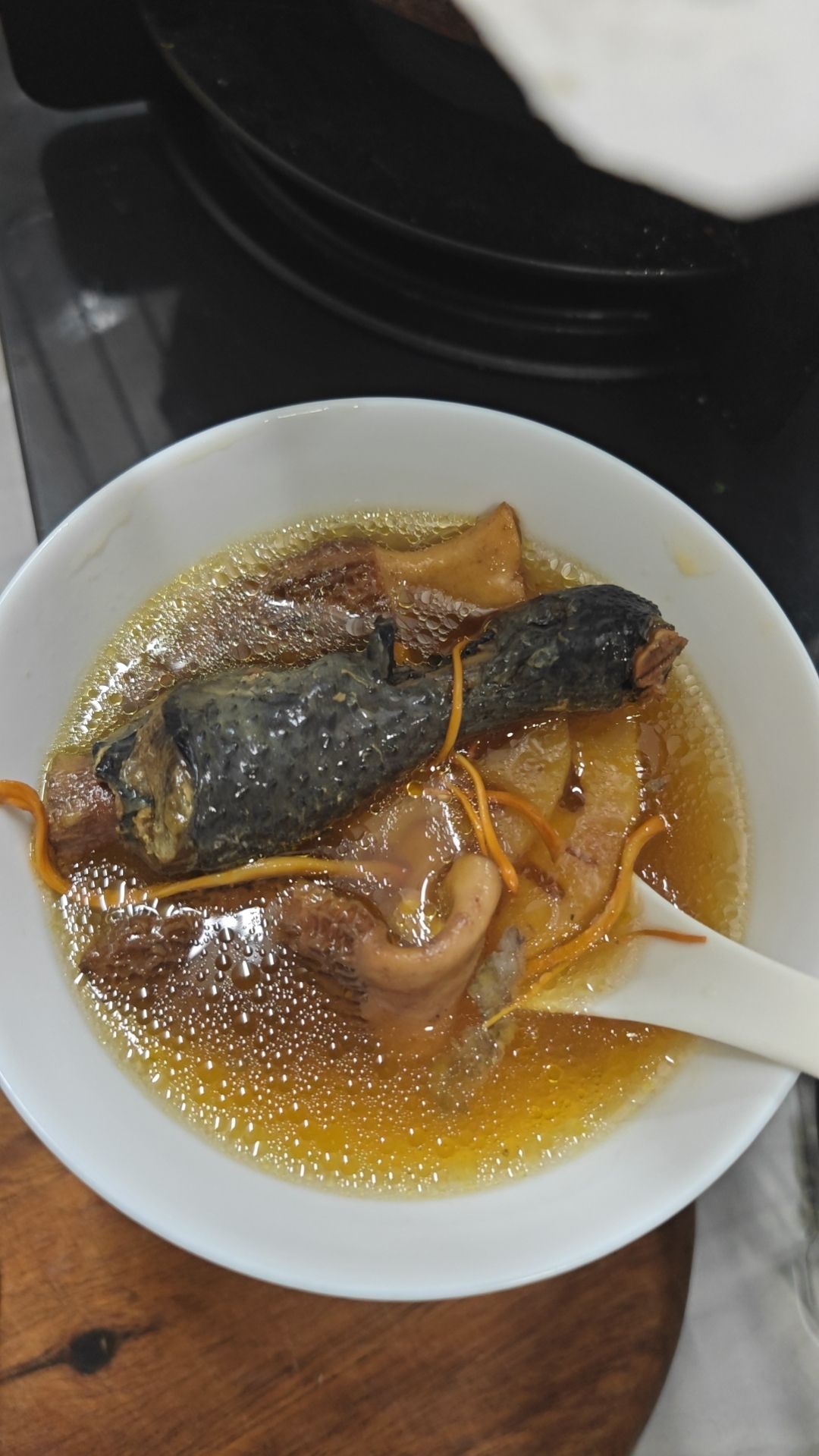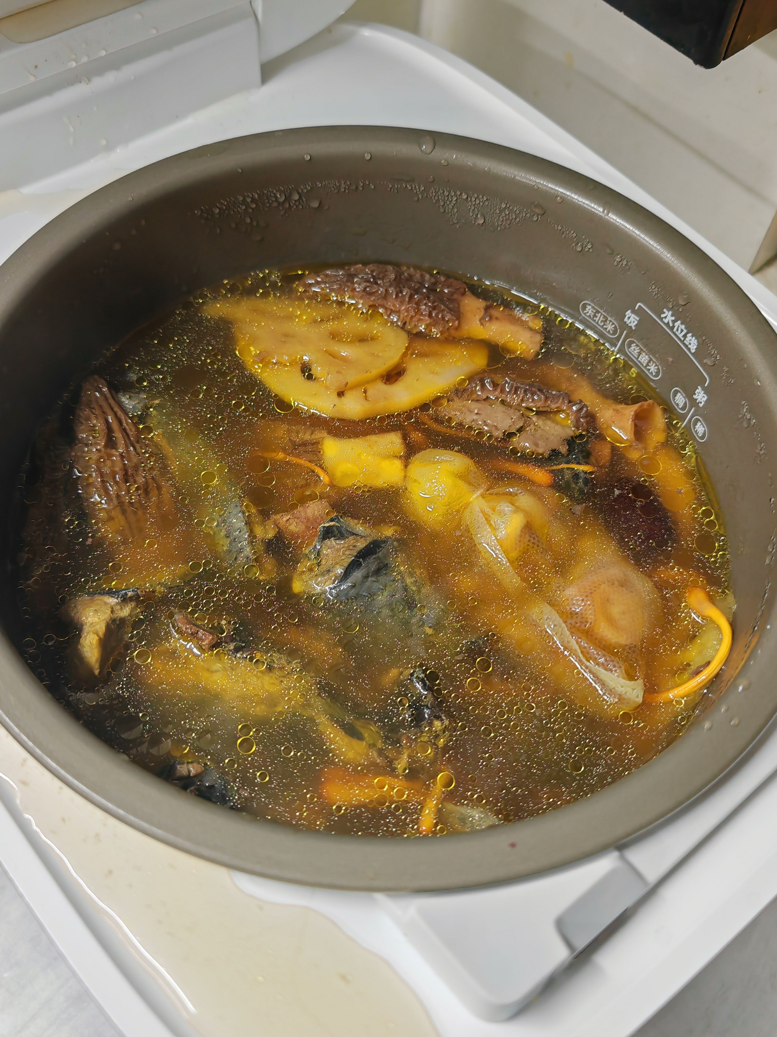 乌鸡汤 加了虫草花 羊肚菌 藕片