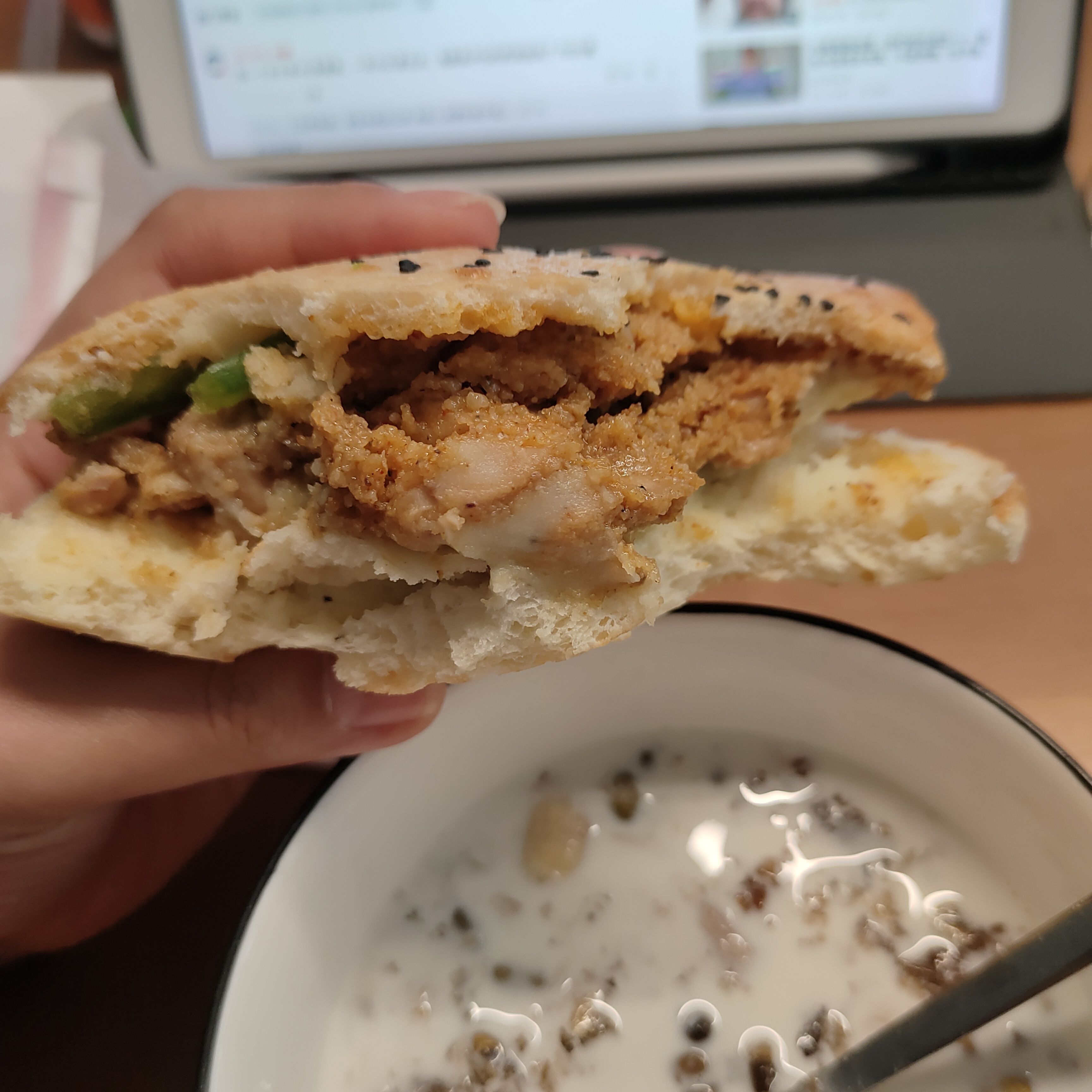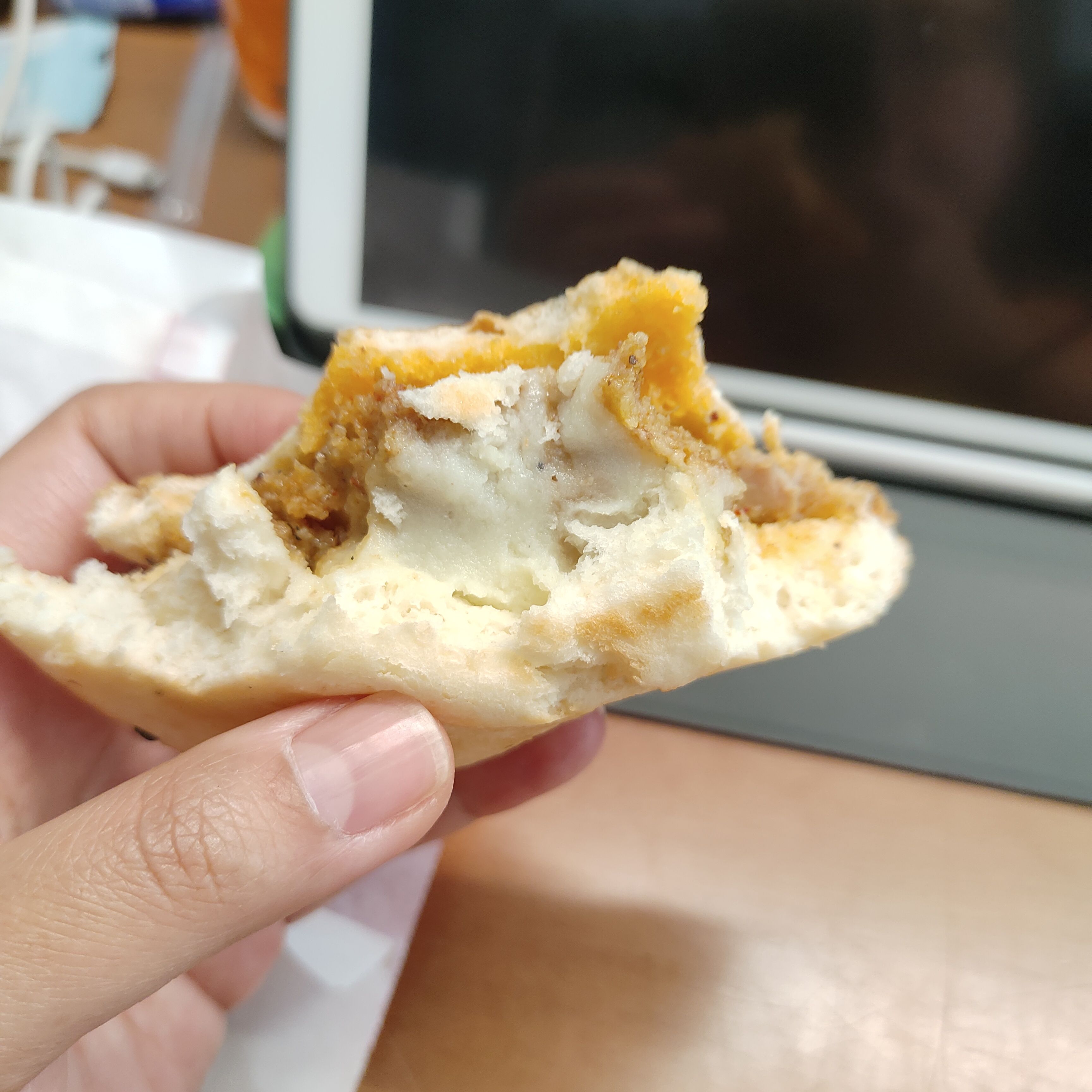 发面饼+粉蒸鸡肉本身就够怪的了,结果里面怎么还有土豆泥啊😨