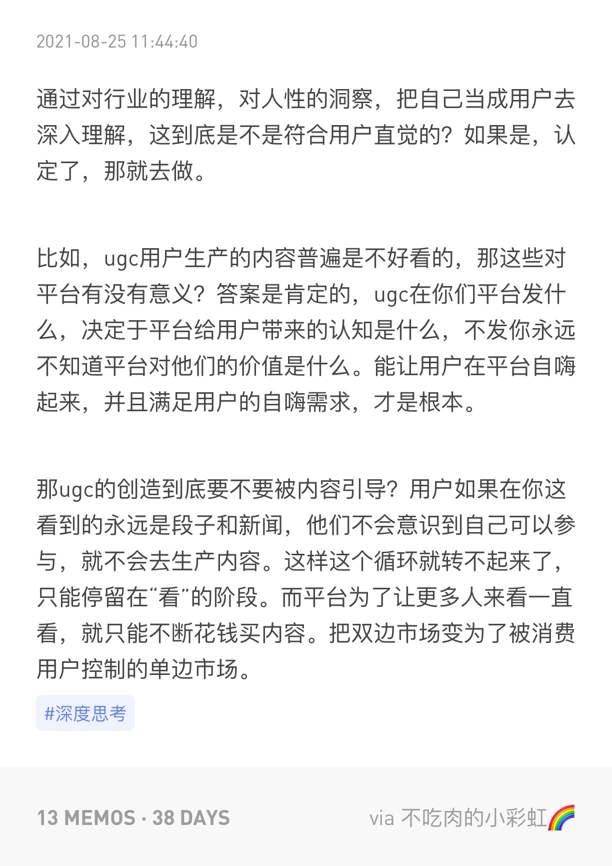 • 影响生态的内容量级还不足以用来扩大,需要从培养人和扩展内容类型的角度去提升这部分内容量级