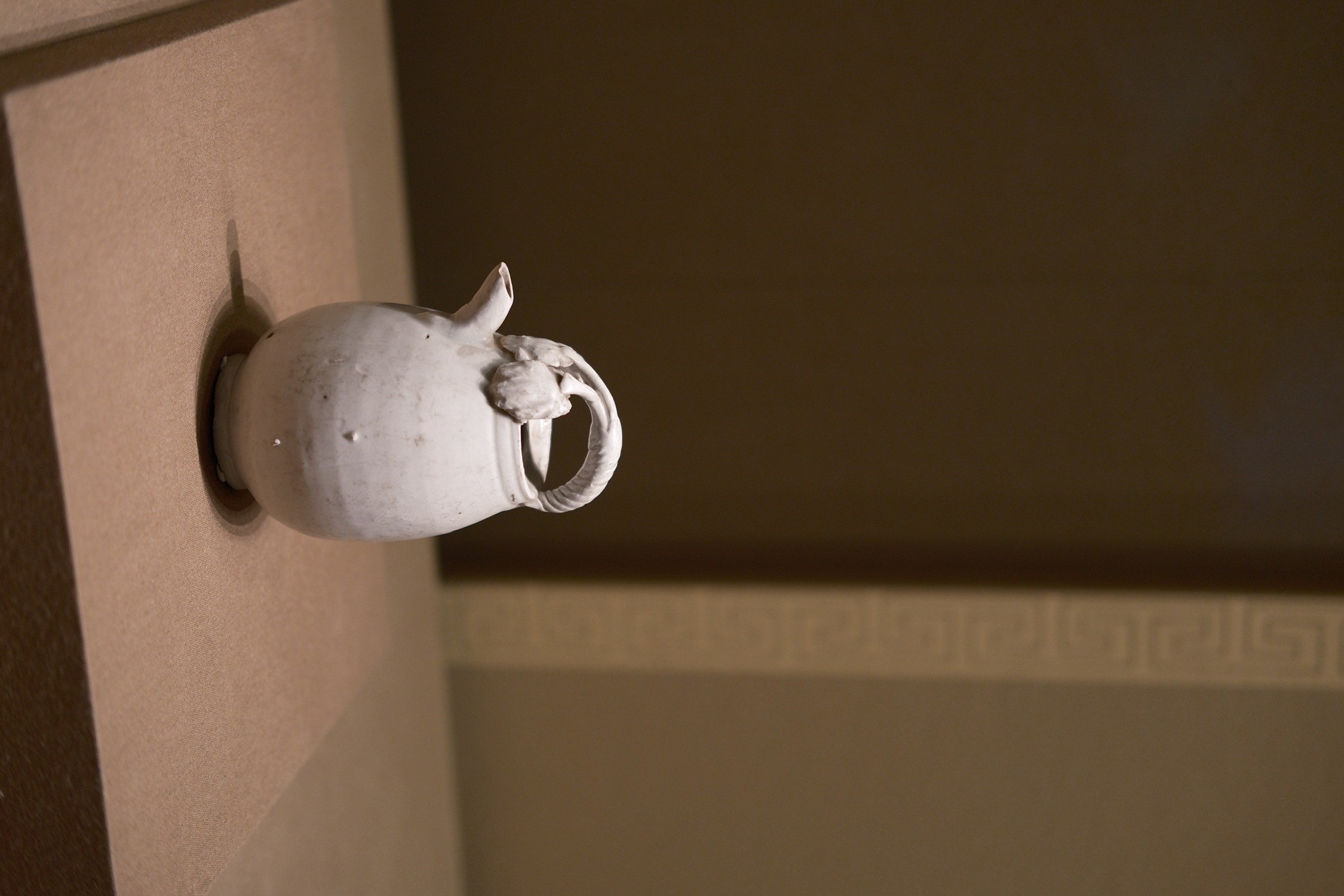 在北京观展总能遇到有文化的大明白,这次又是两位青年男性,指着一个铜牛角杯赞道这倒是难得。转头又给旁人科普马鞍壶的器型由来。