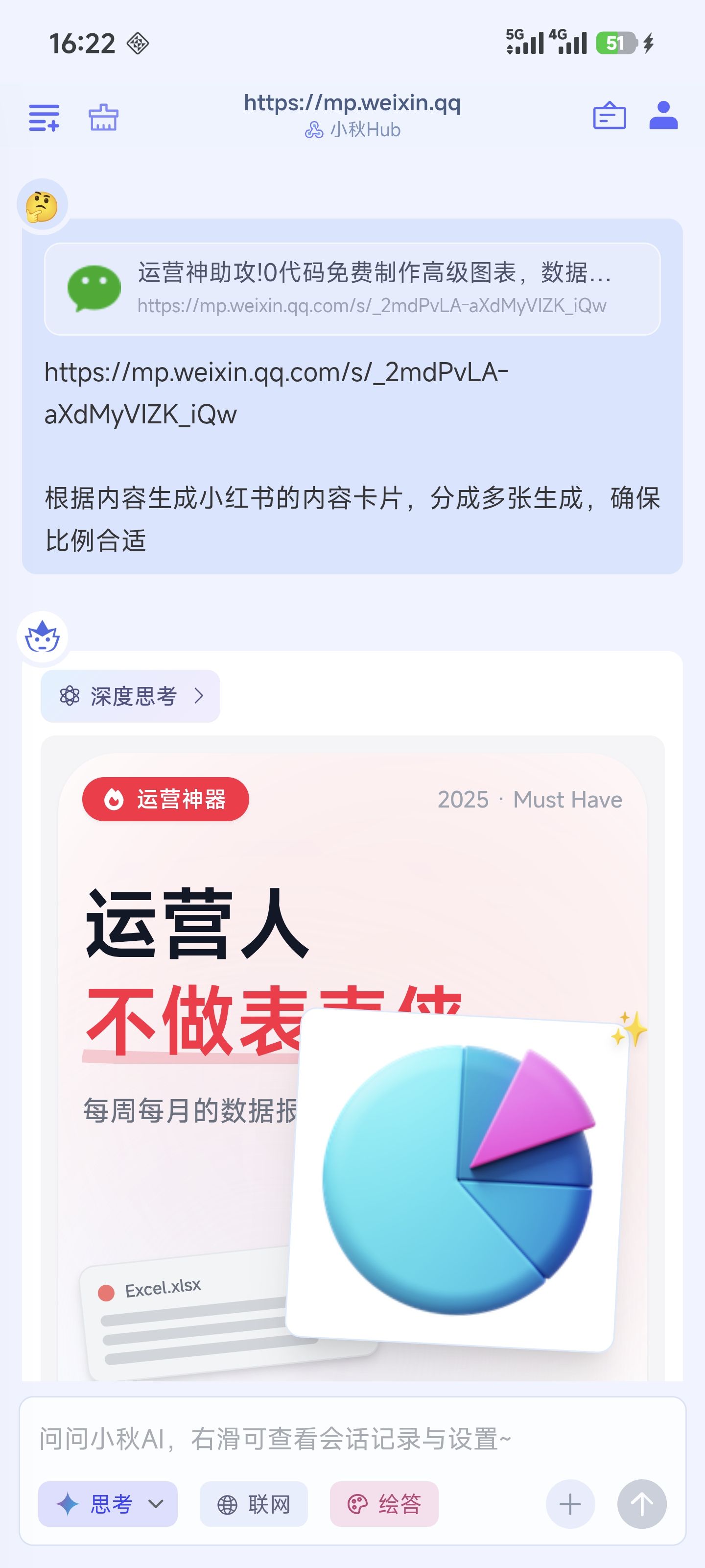 让AI直接回复更有表现力的内容,保存一下就是一个精美内容总结卡片。