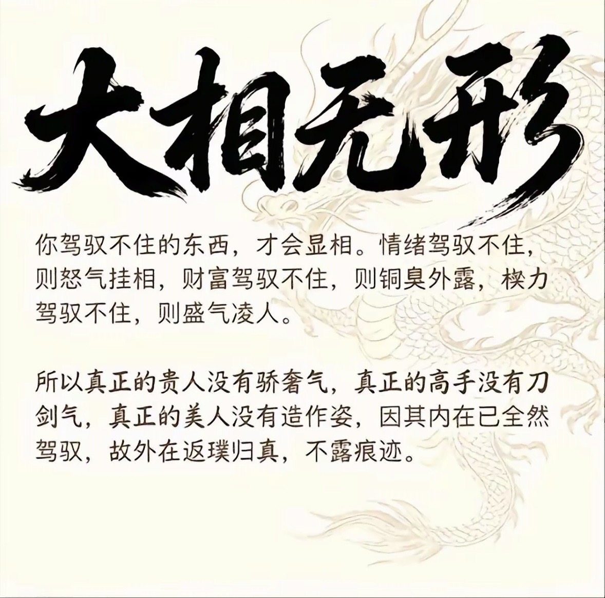 凡我所失,皆非我所有;凡我所求,皆受其所困。万物皆为我所用,而非我所属。君子使物,不为物所使。大道至简,无欲则刚,无为则无所不为。
