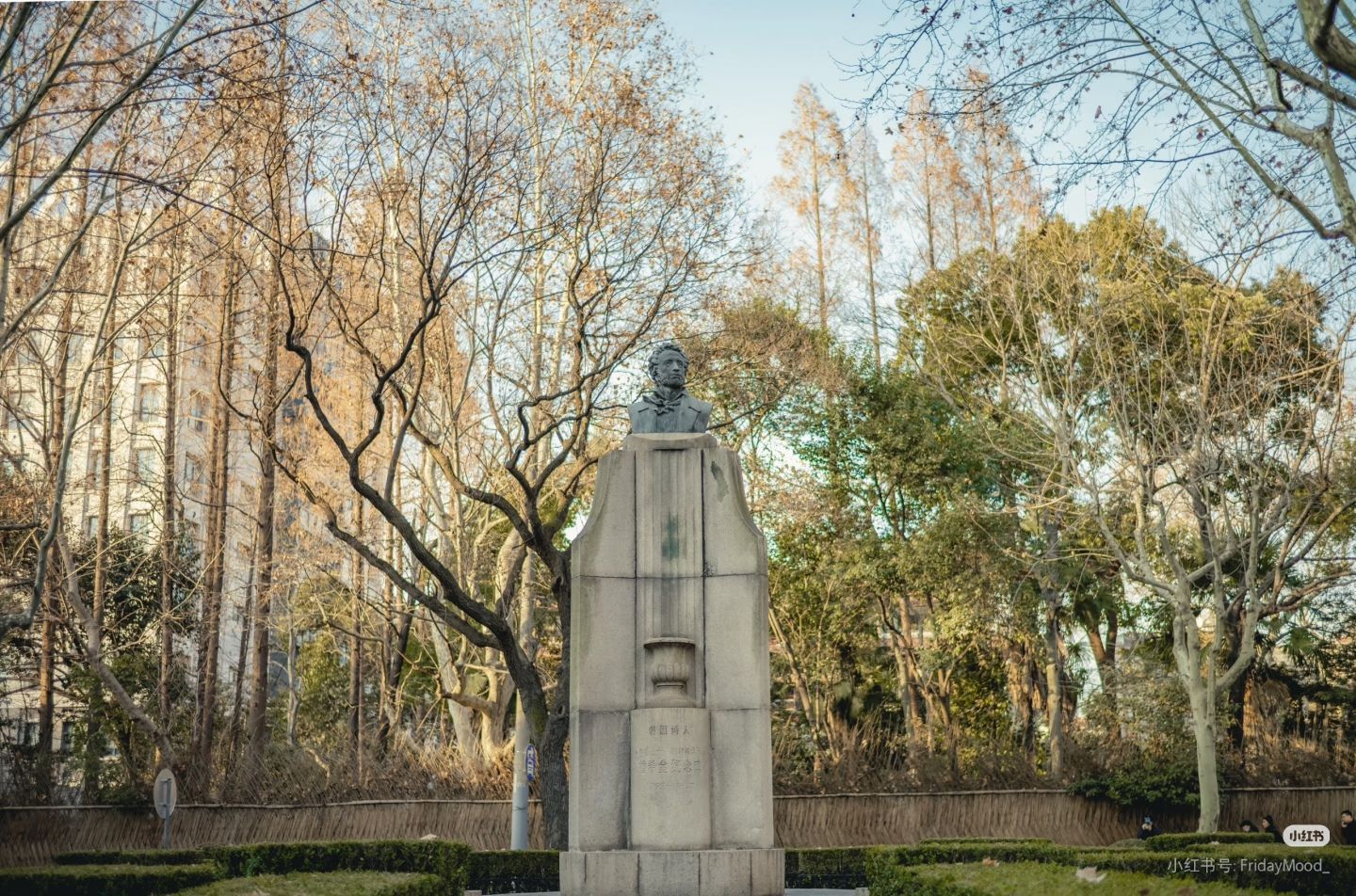 小时候经常会去玩的三角花园,东湖宾馆对面的小三角里有田汉像,聂耳像在美领馆北面的大三角里,印象最深的是五官科医院这里的小小三角里有普希金像,家里有本发黄的普希金诗集,第一篇就是《假如生活欺骗了你》,一直觉得万晓利的《这一切没有想象那么糟》应该是来自于这首诗,那年老妈动手术,她偷偷溜出来在这个小花园里喝我给他带的鸽子汤。