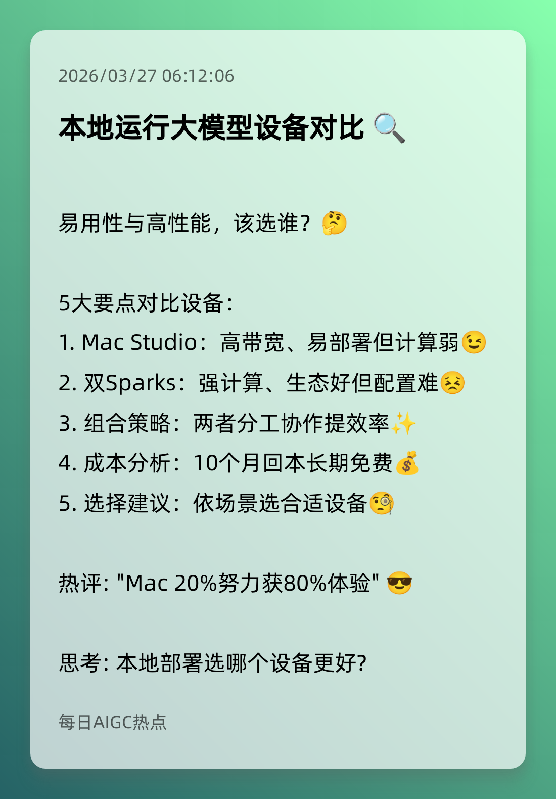 5. 本地运行大模型设备对比 🔍