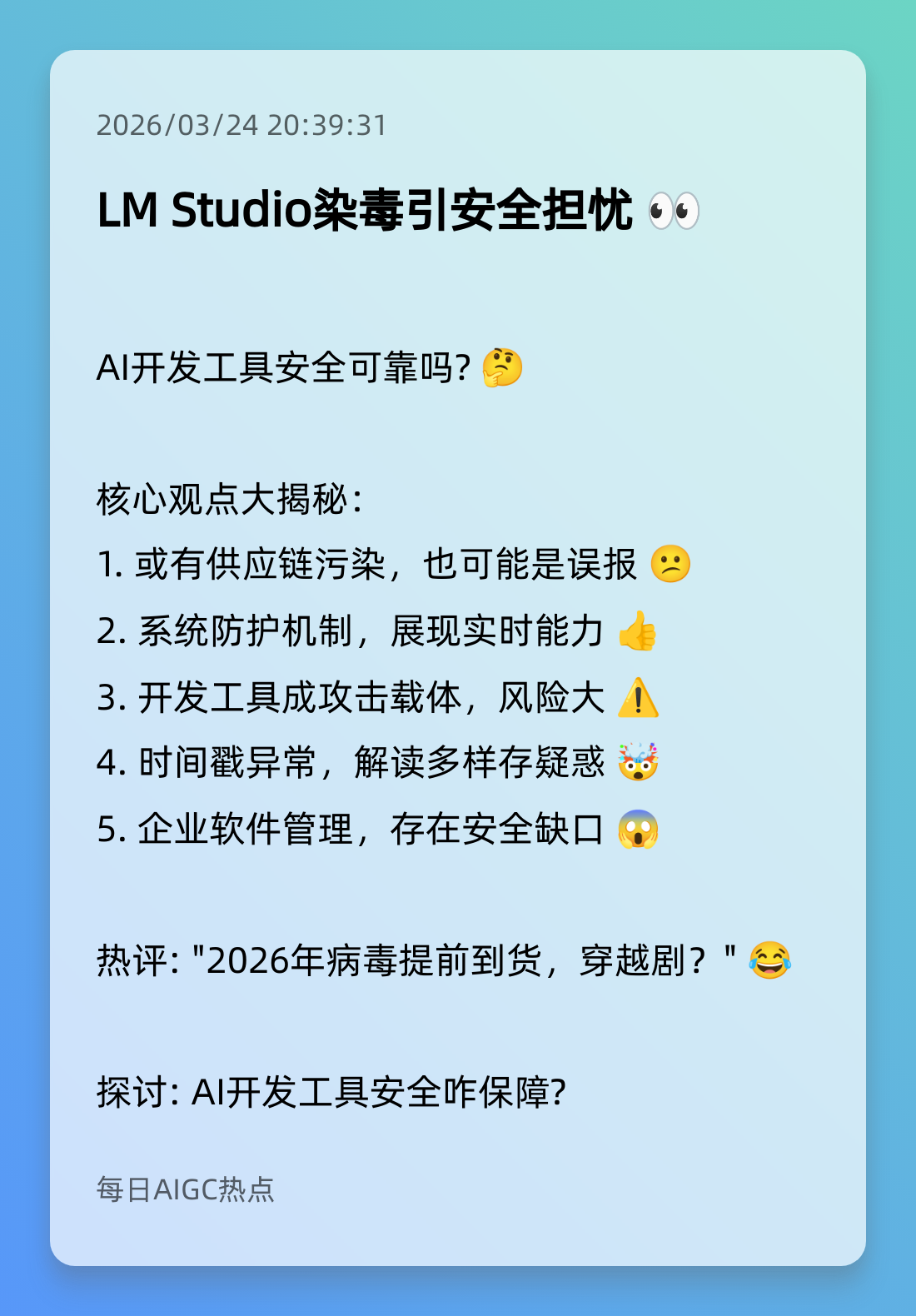 1. LM Studio染毒引安全担忧 👀