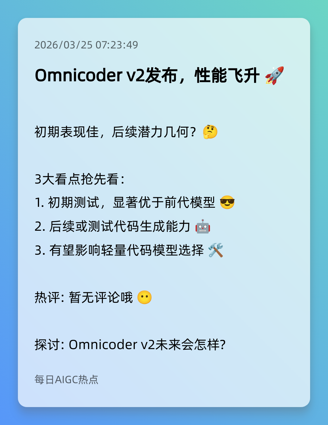 9. Omnicoder v2发布,性能飞升 🚀