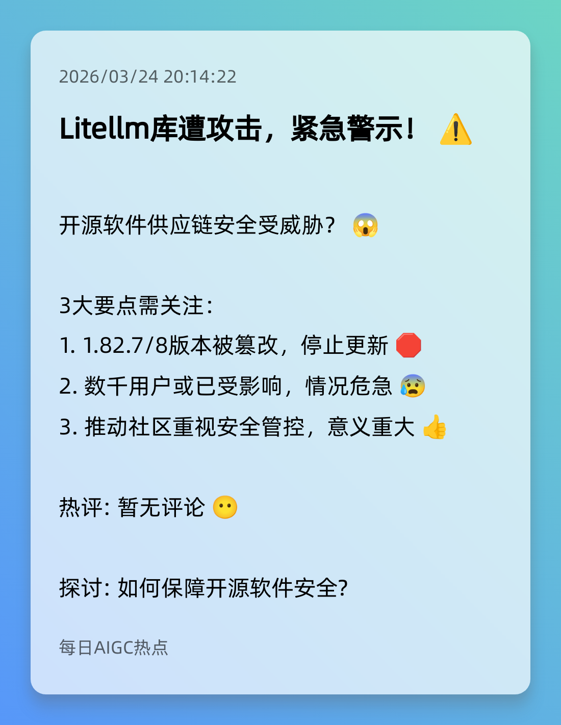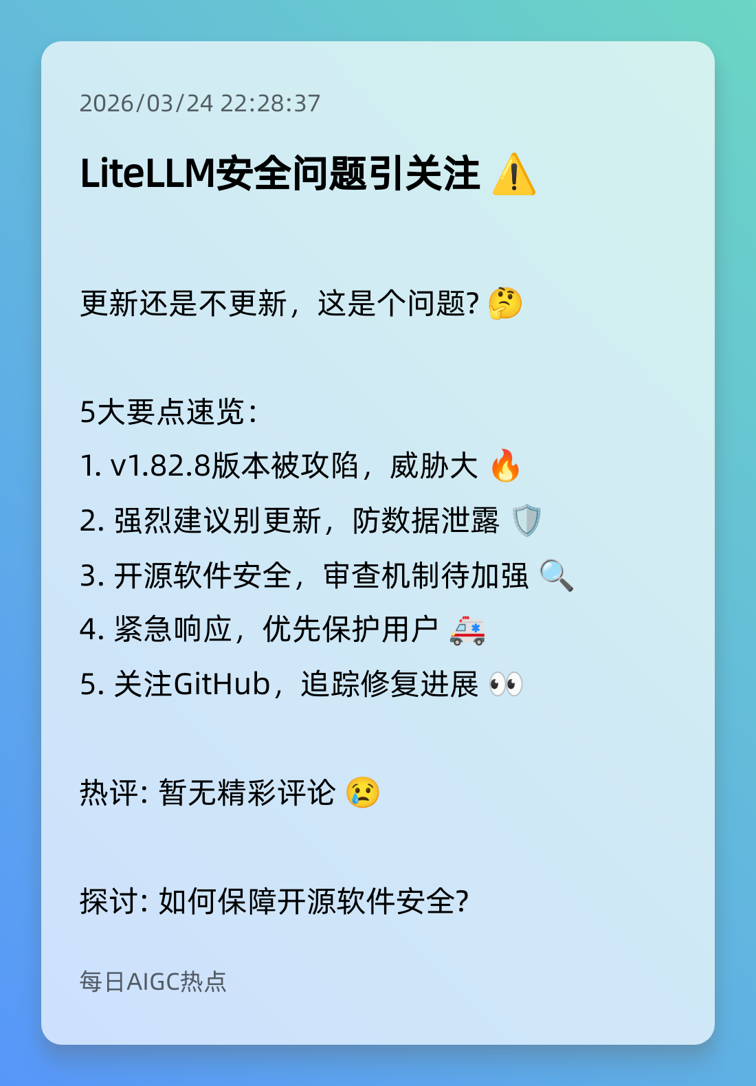 7. Litellm库遭攻击,紧急警示! ⚠️
