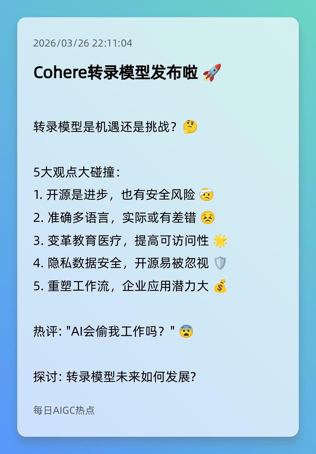 9. Cohere转录模型发布啦 🚀