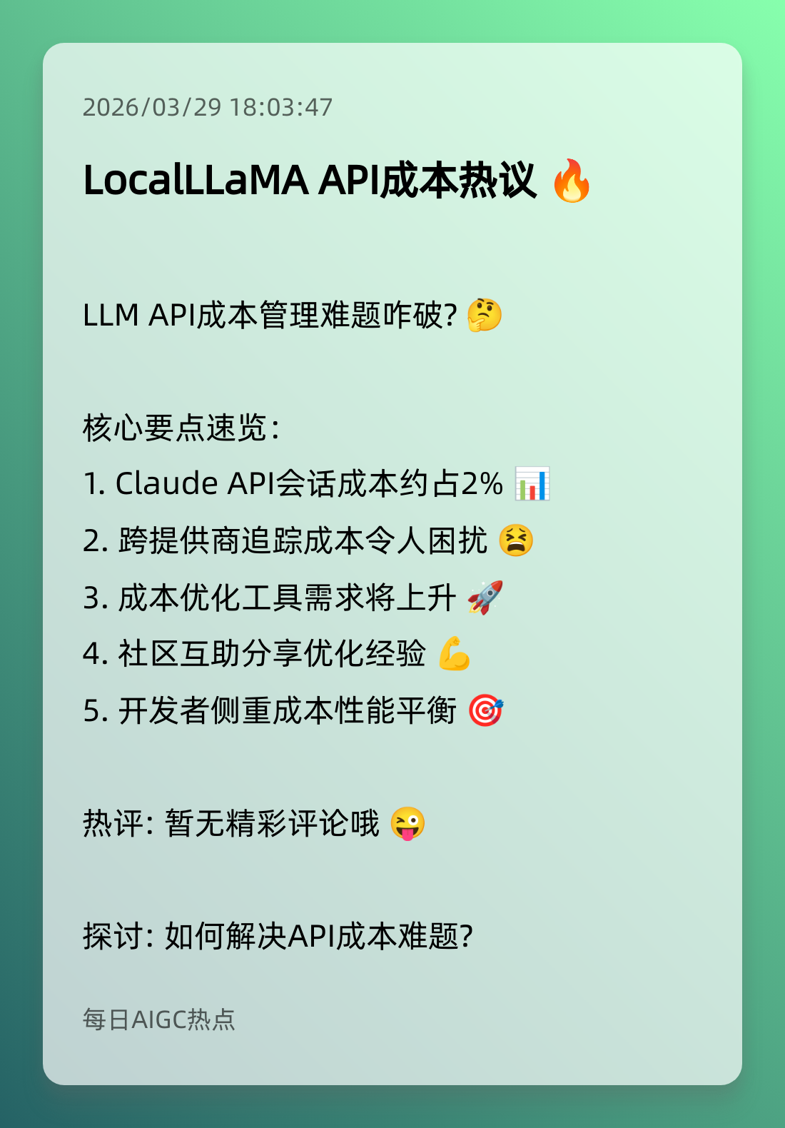 1. LocalLLaMA API成本热议 🔥
