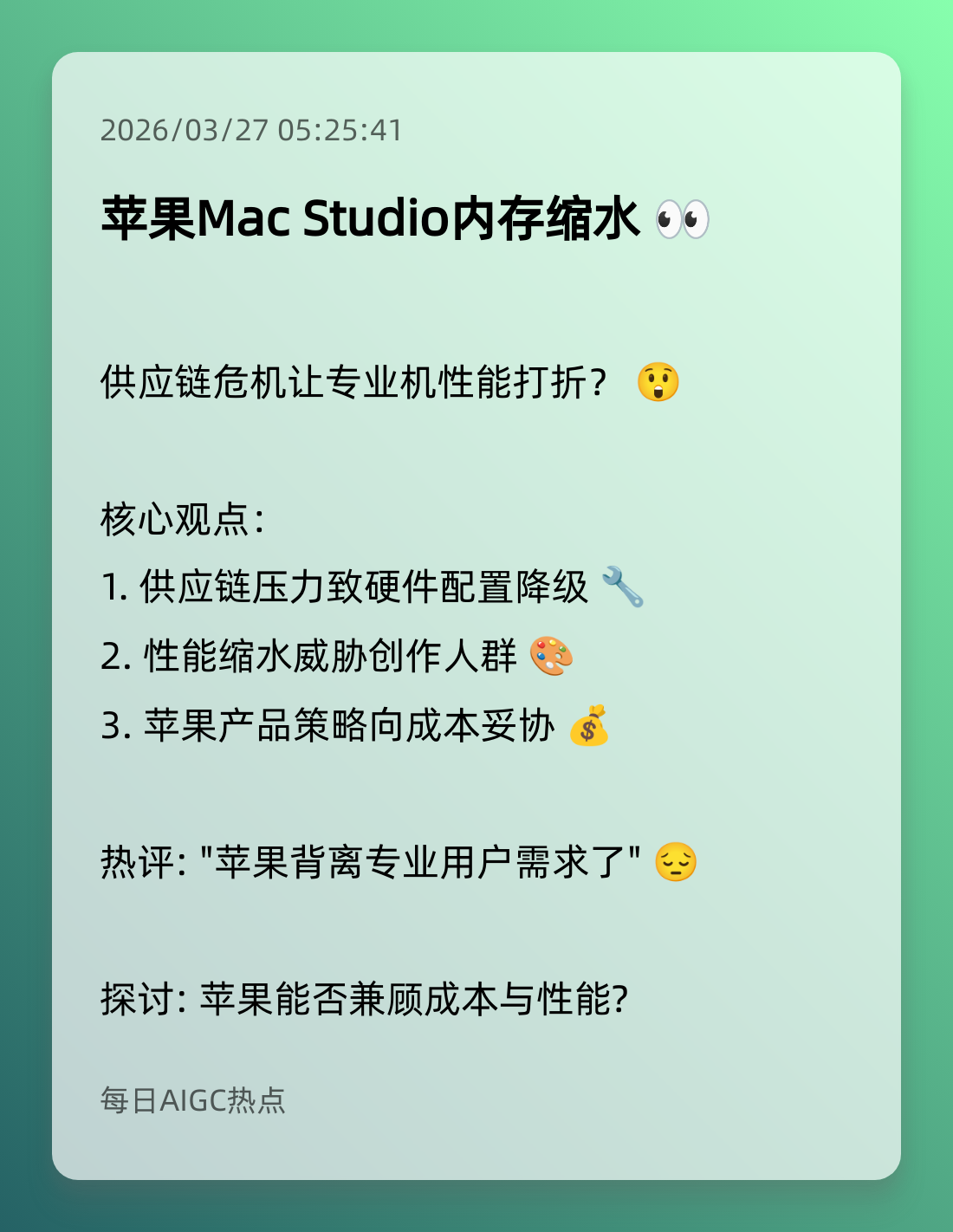 6. 苹果Mac Studio内存缩水 👀