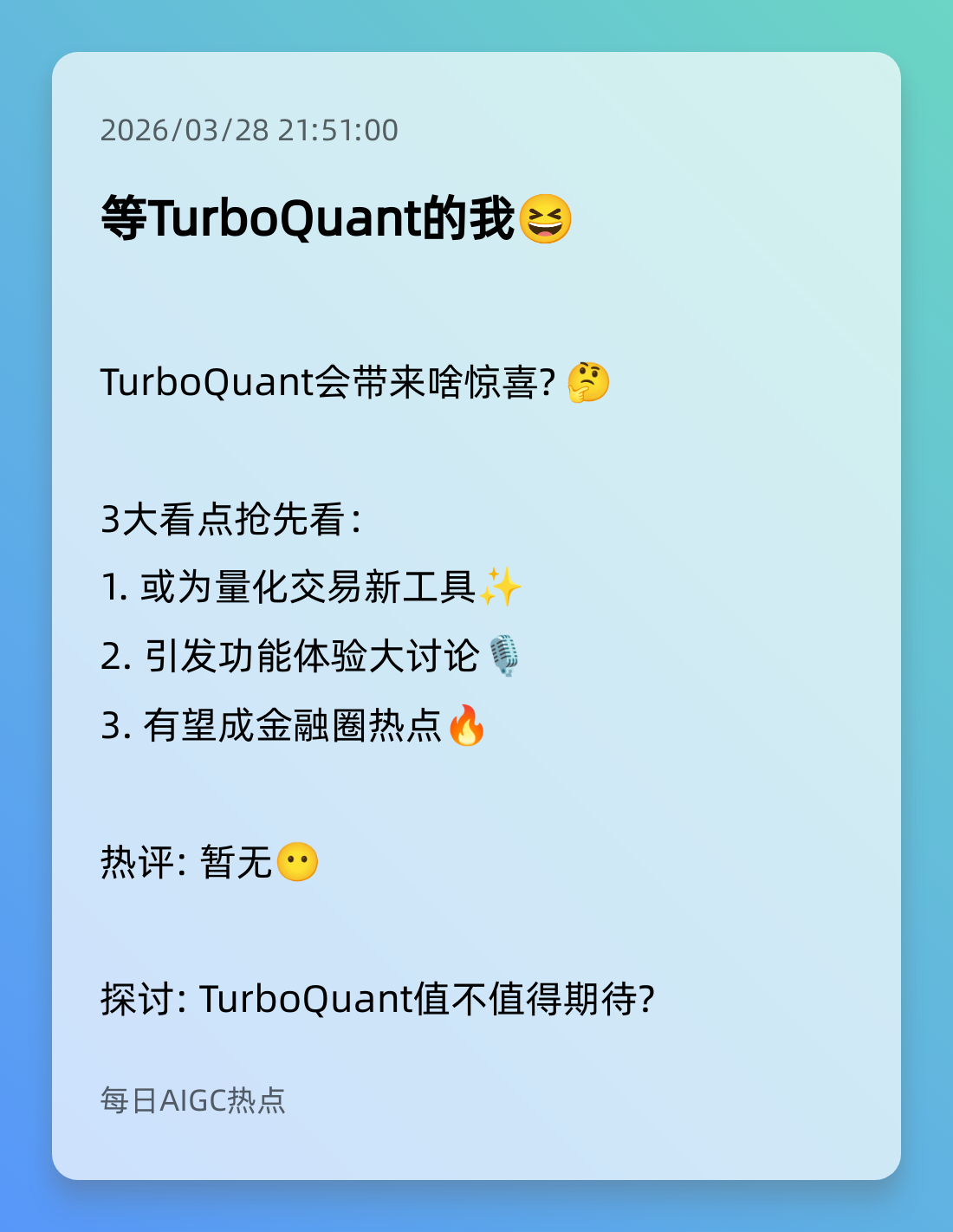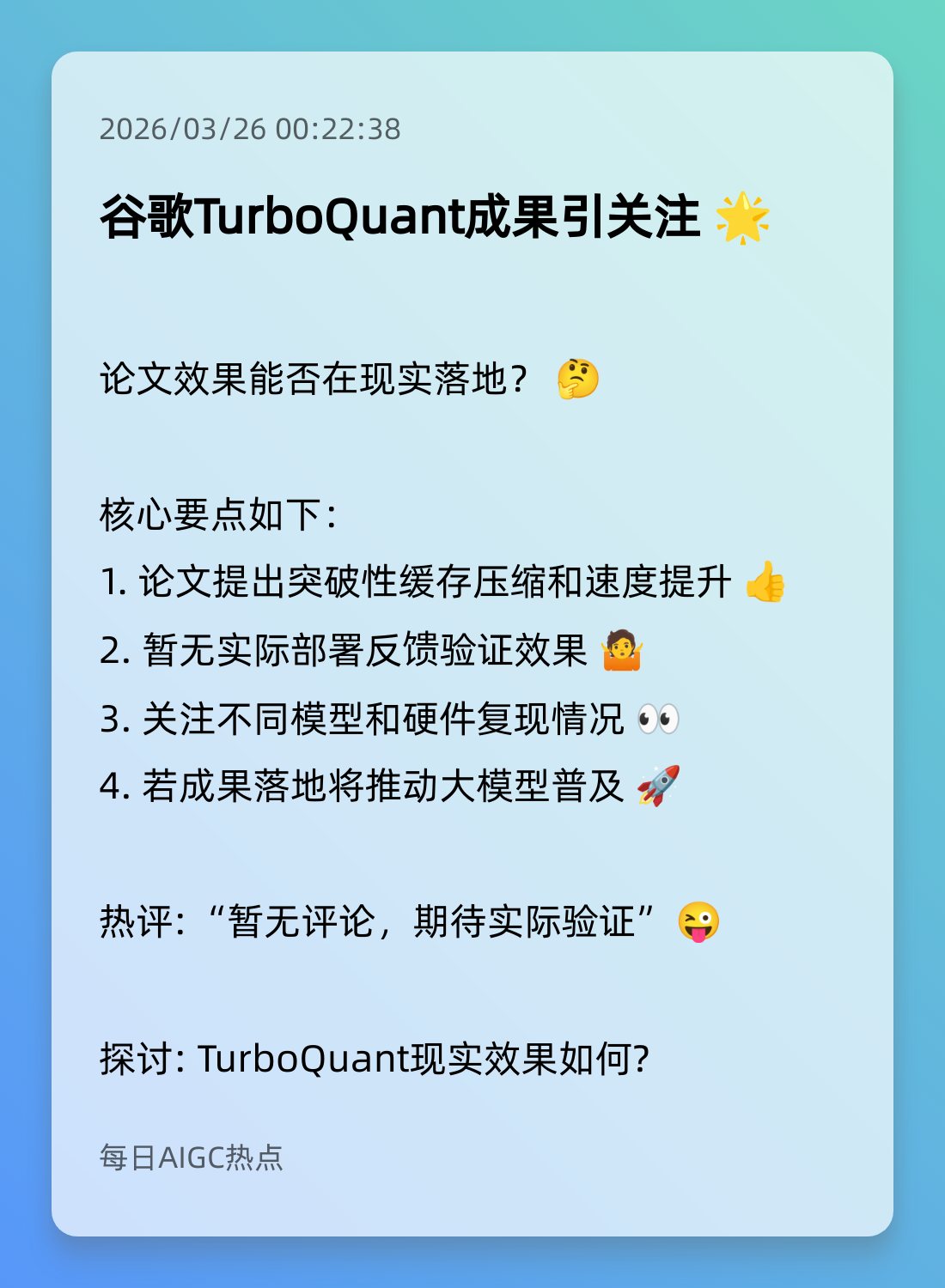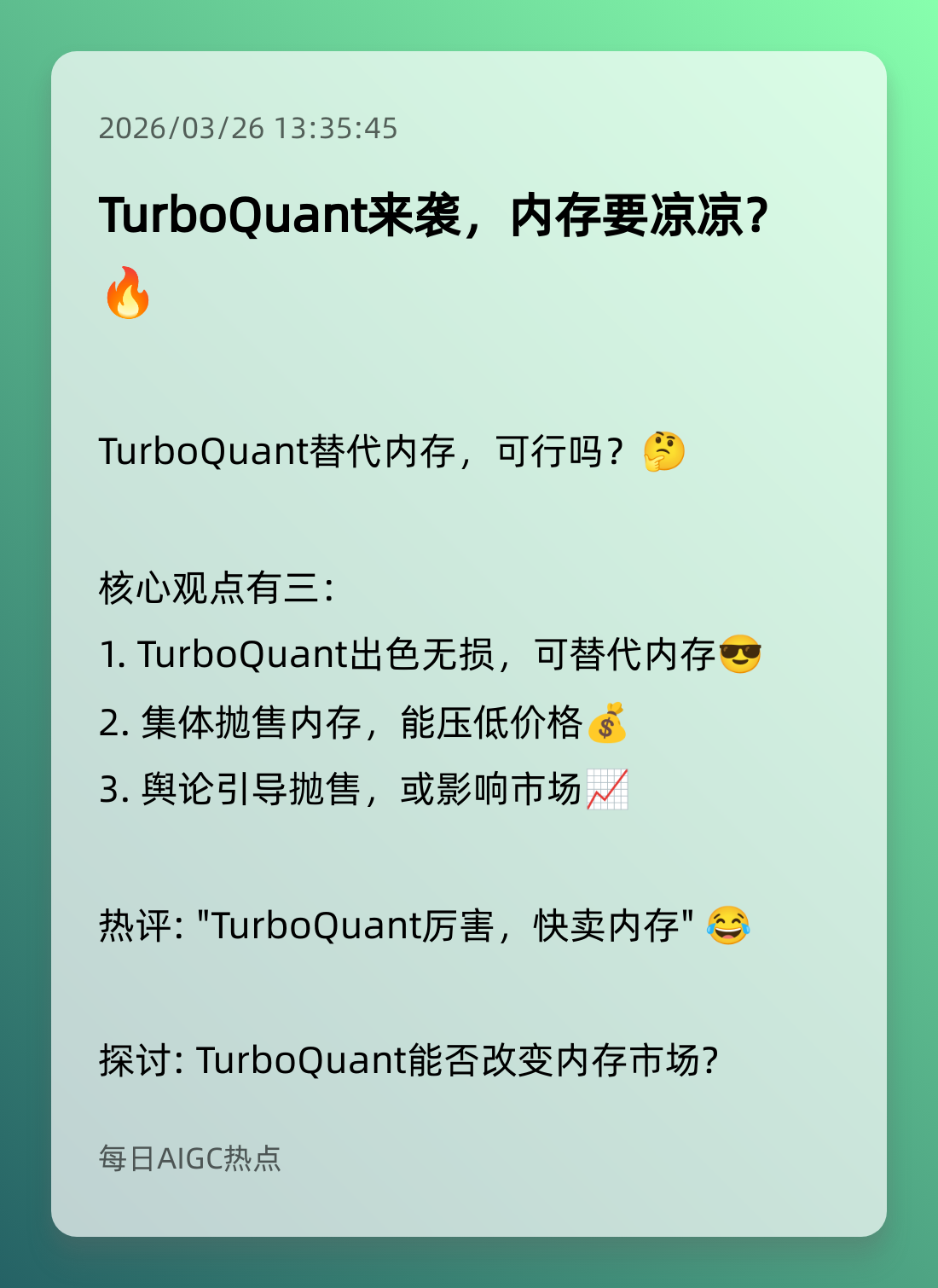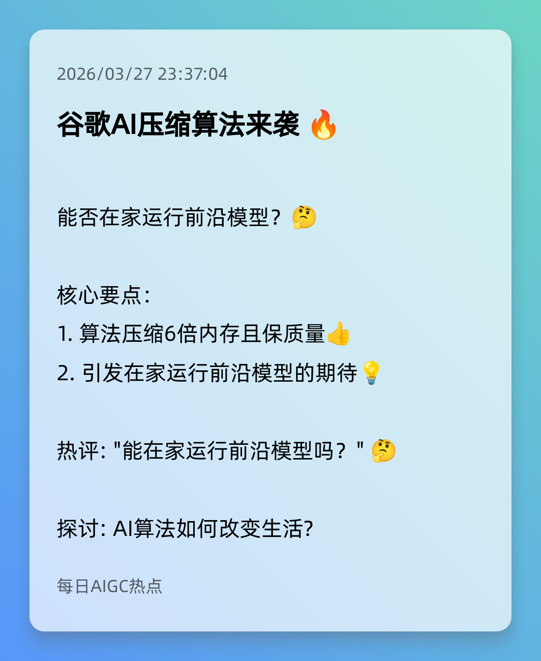 10. 谷歌TurboQuant技术惊艳登场 🌟