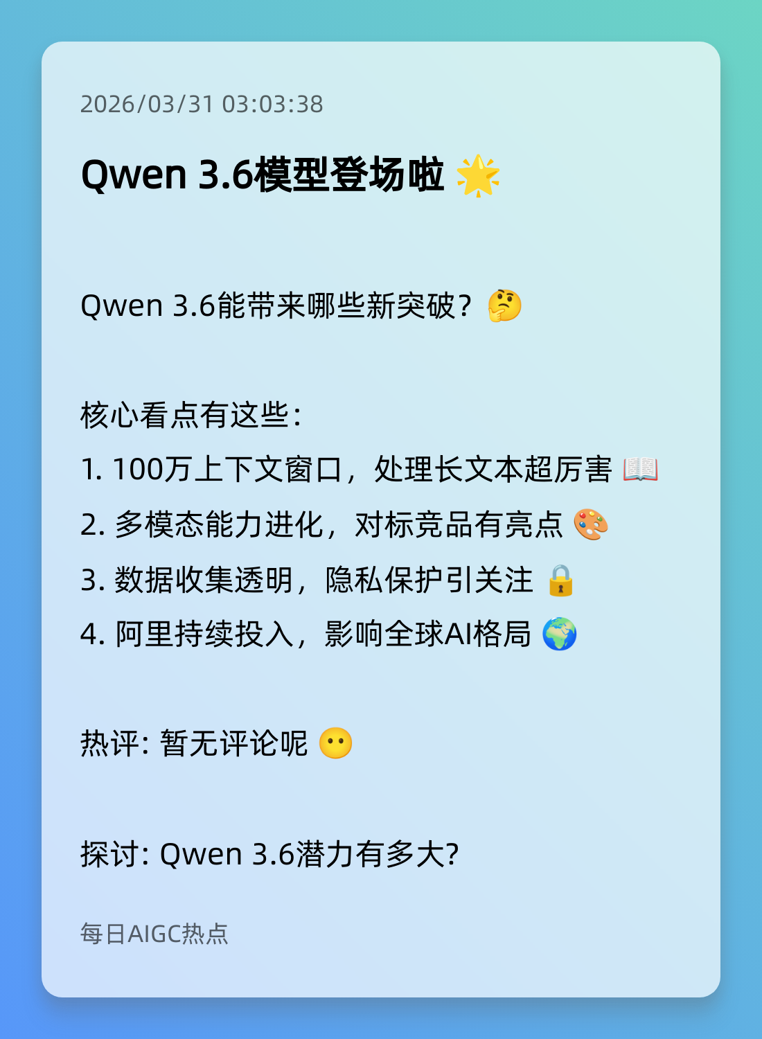 3. Qwen 3.6模型登场啦 🌟