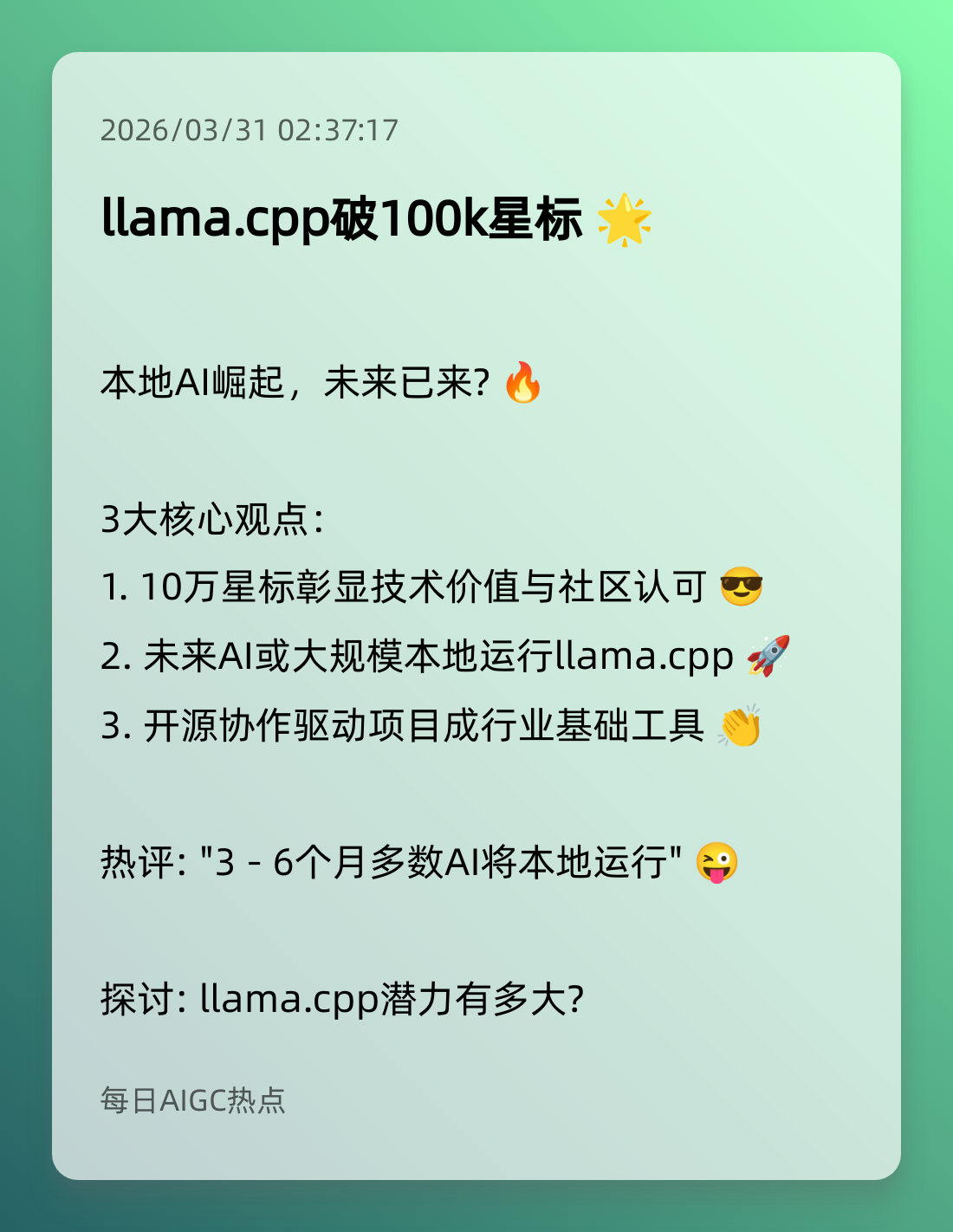 1. llama.cpp破100k星标 🌟