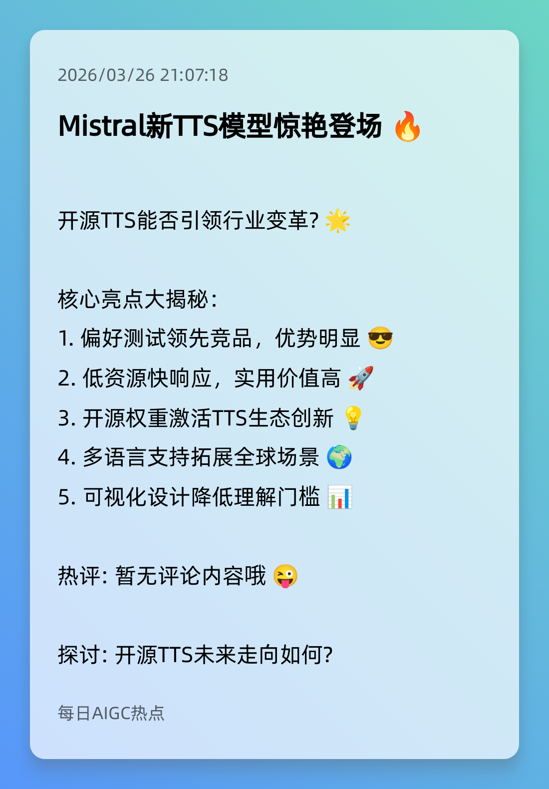 1. Mistral新TTS模型惊艳登场 🔥