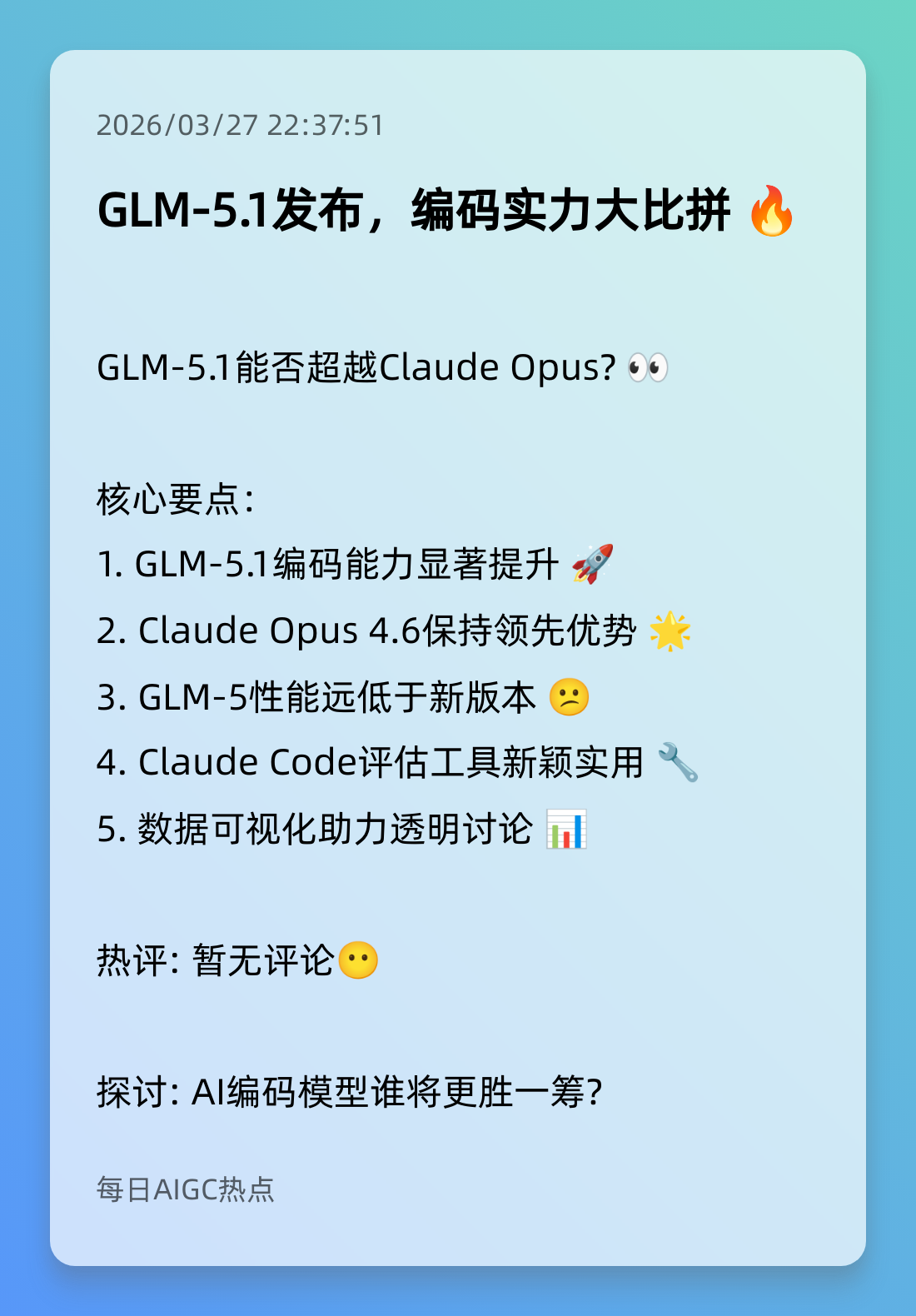 4. GLM-5.1发布,编码实力大比拼 🔥