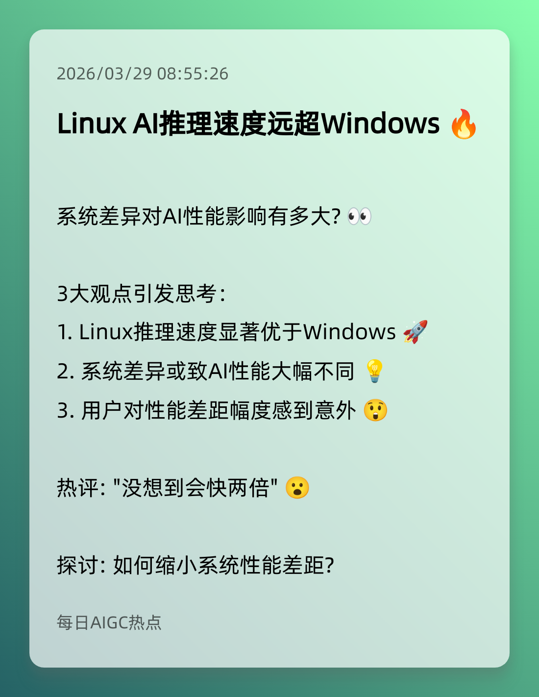 7. Linux AI推理速度远超Windows 🔥