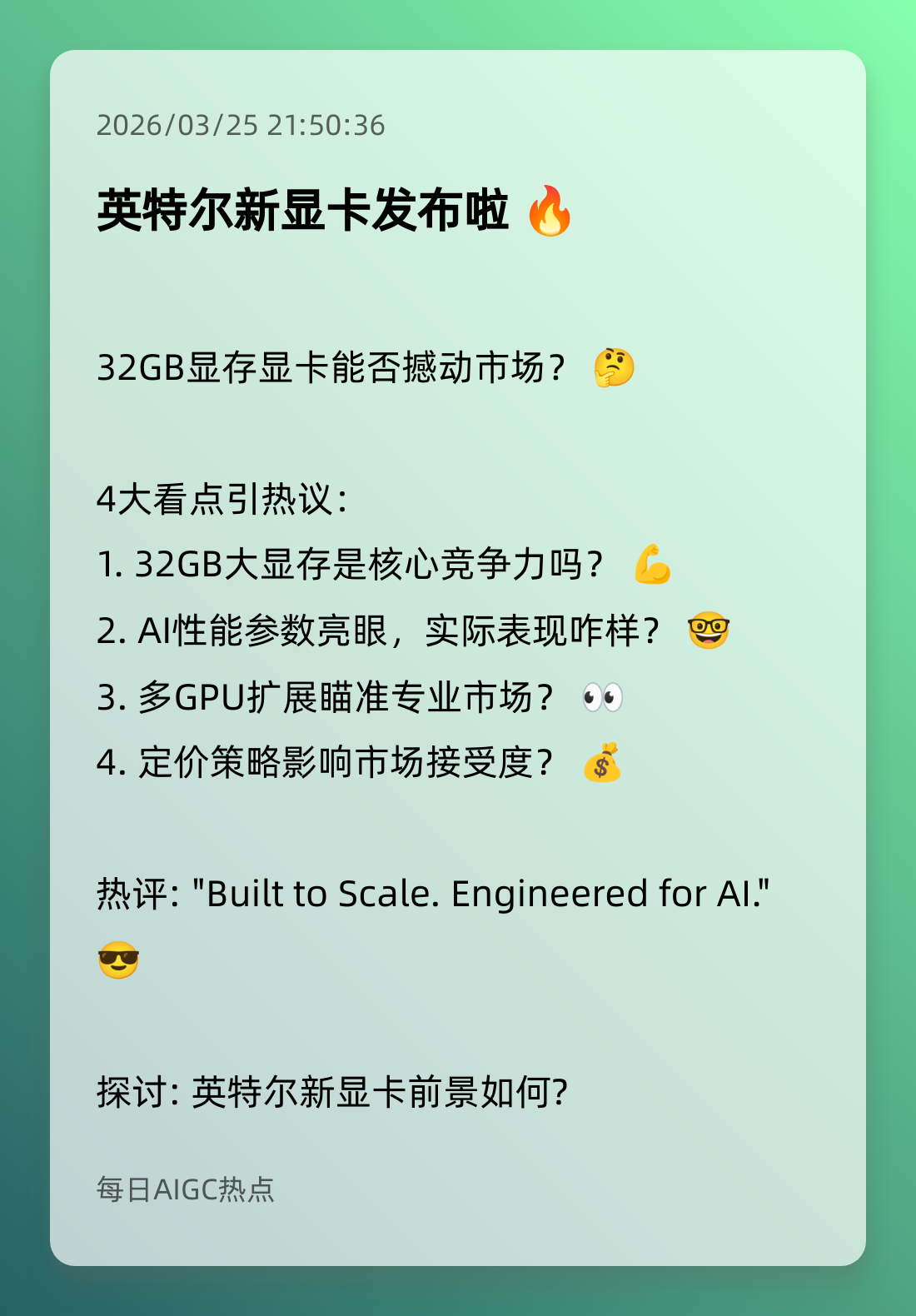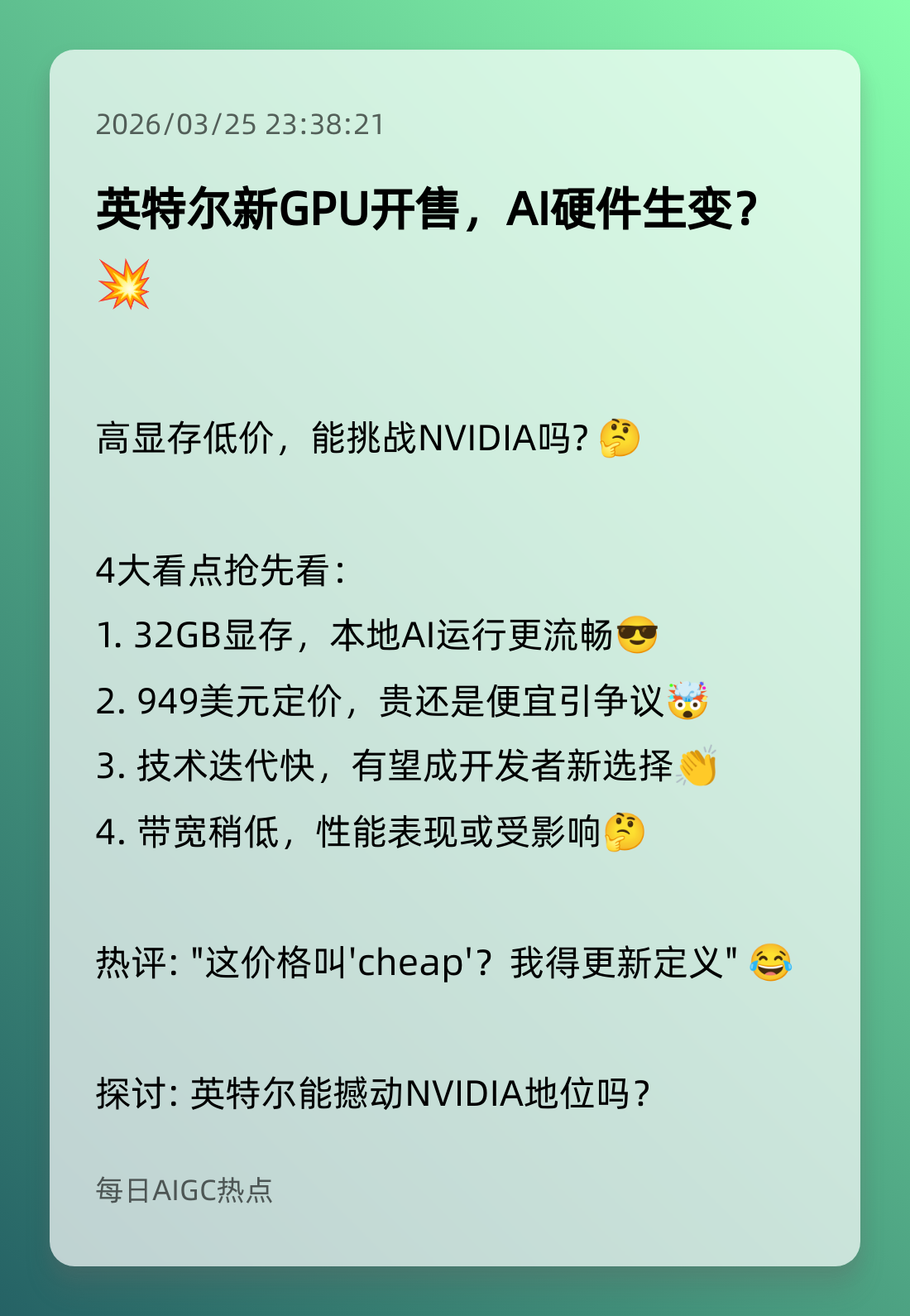 1. 英特尔新GPU开售,AI硬件生变?💥