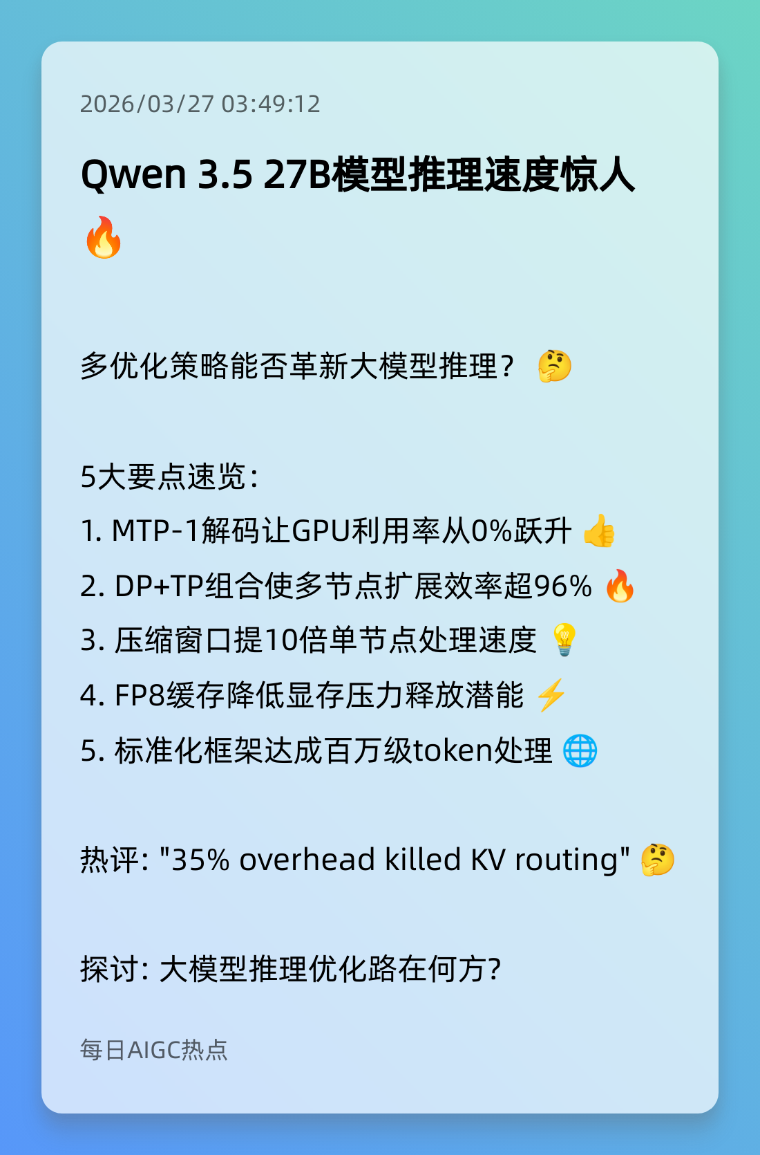7. Qwen 3.5 27B模型推理速度惊人 🔥