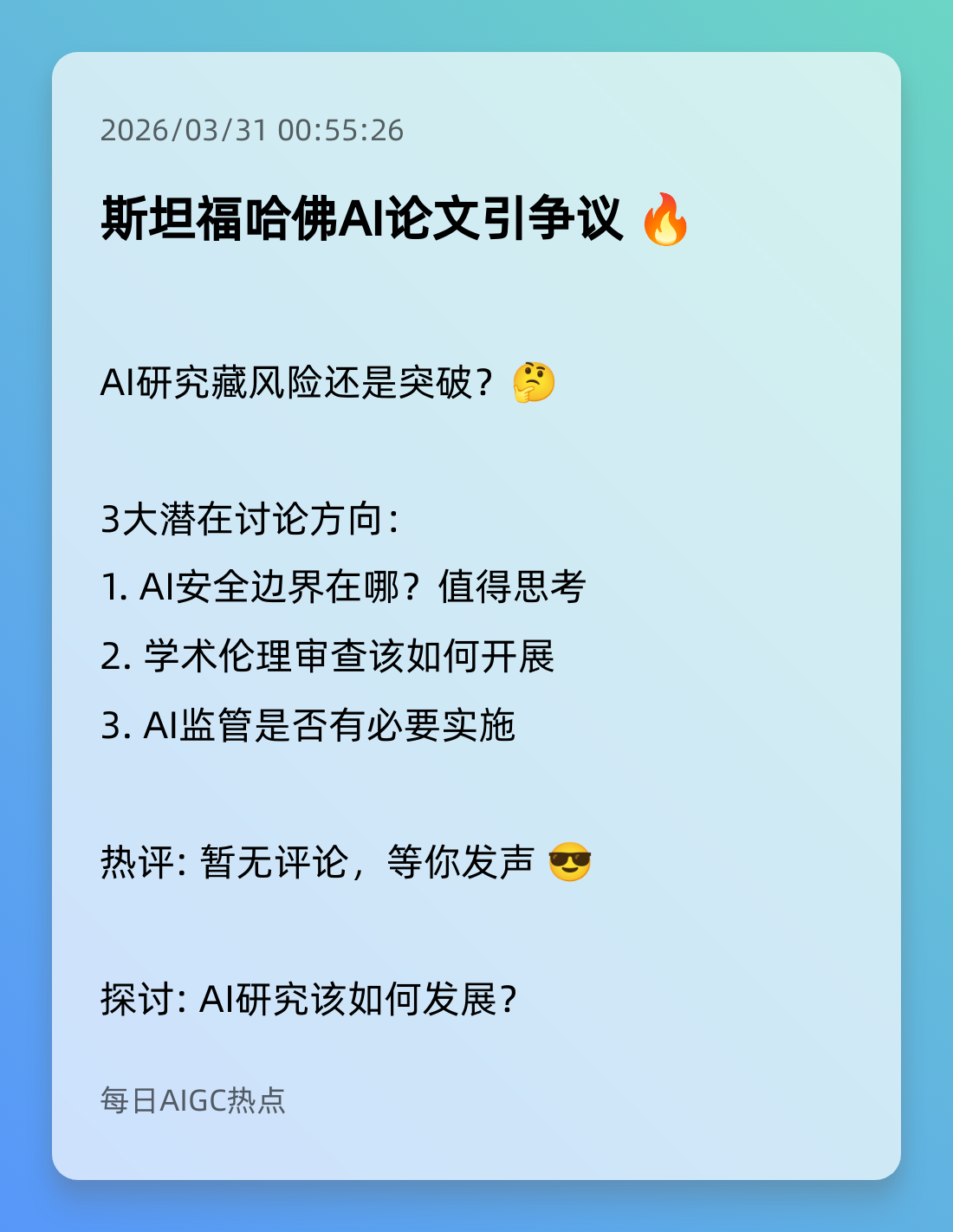 2026-03-31 最新AI热点讨论一览