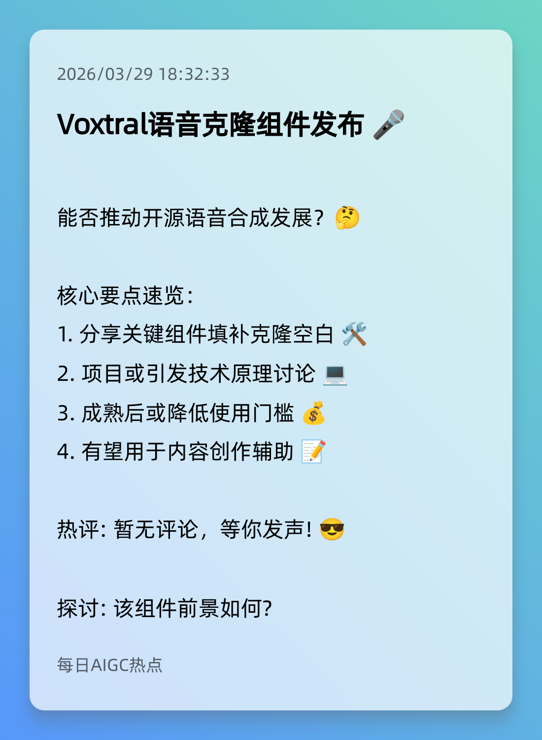 2. Voxtral语音克隆组件发布 🎤
