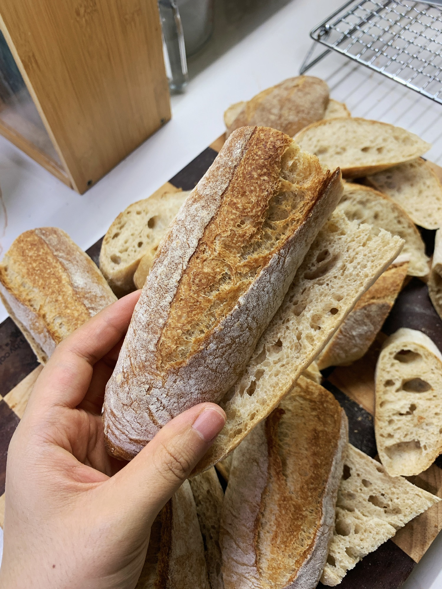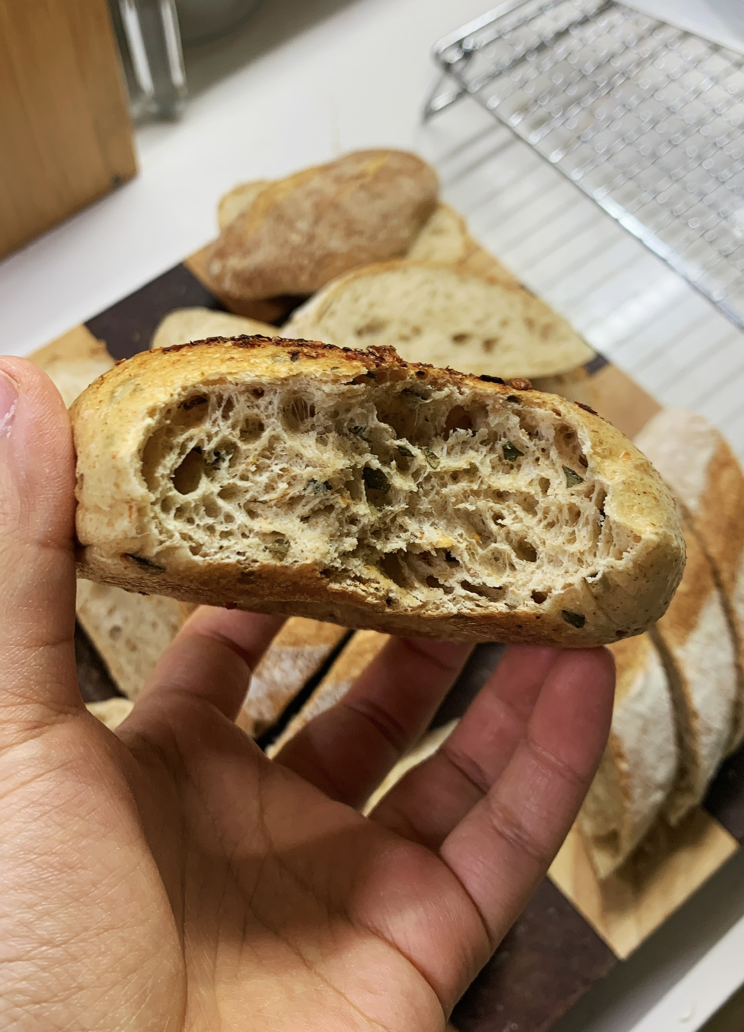 隔夜发酵的法棍和花椒叶盐贝果,加了一些全麦粉增加风味~第一次烤法棍,整形丑丑的,割包也丑丑的,但是!是真好吃啊!