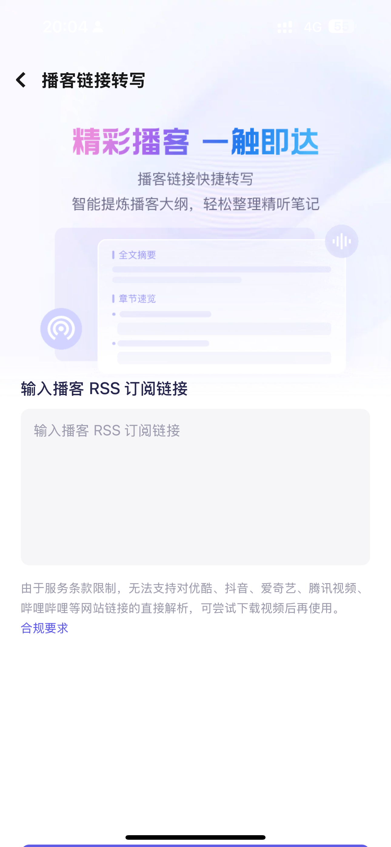 通义App的播客链接转写服务,对iPhone pro max没有适配好,图1是app的,开始解析按钮,得特意往下滑才能看到,还不如小程序(图2)做的仔细,更便捷的是入口一直在首页可见(图3)