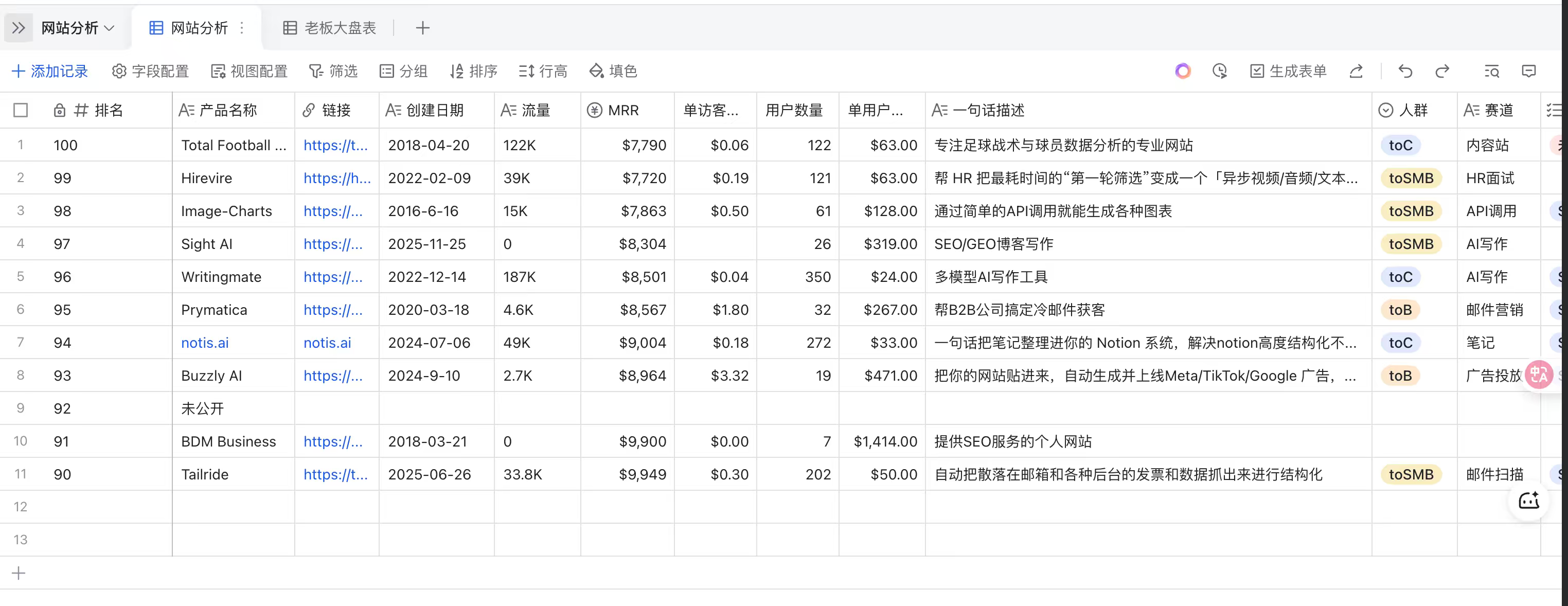 流量侏儒: • Buzzly (广告投放): 2.7K 流量 → $8,964 MRR • 单访客价值: $3.32 (是前者的 80 倍)