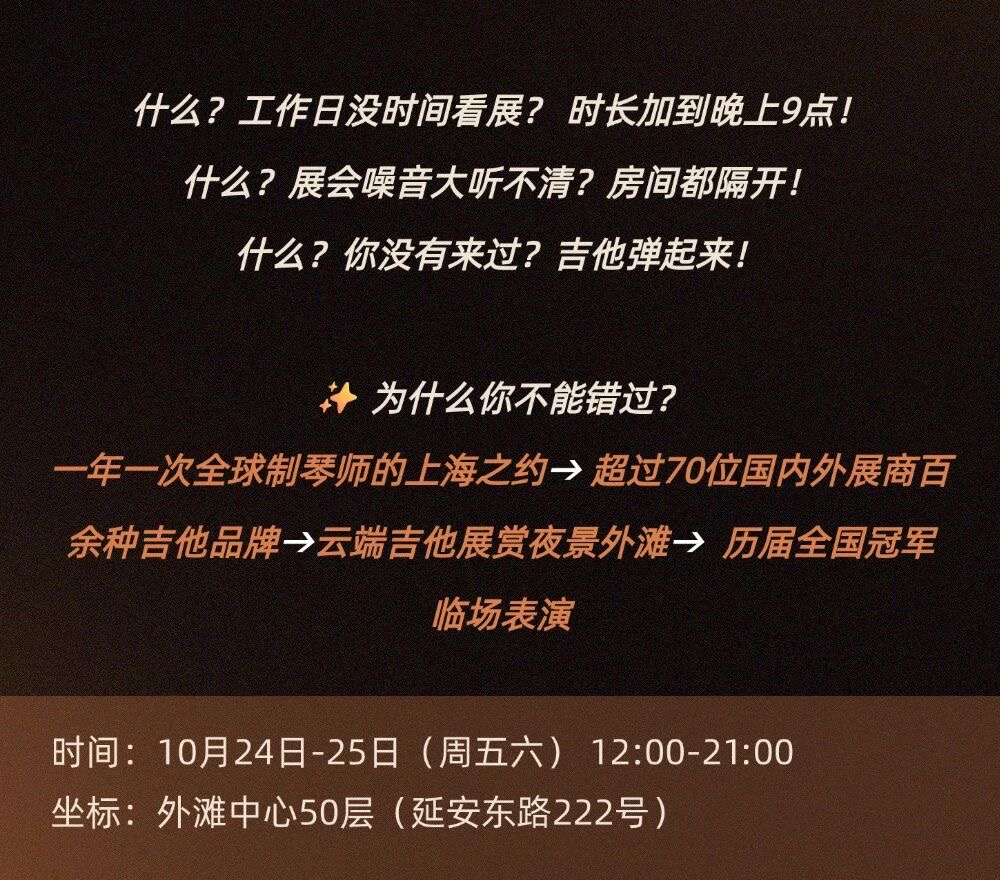 又是一年手工吉他的盛宴,老师们排面安排起来。这个周末上海见!
