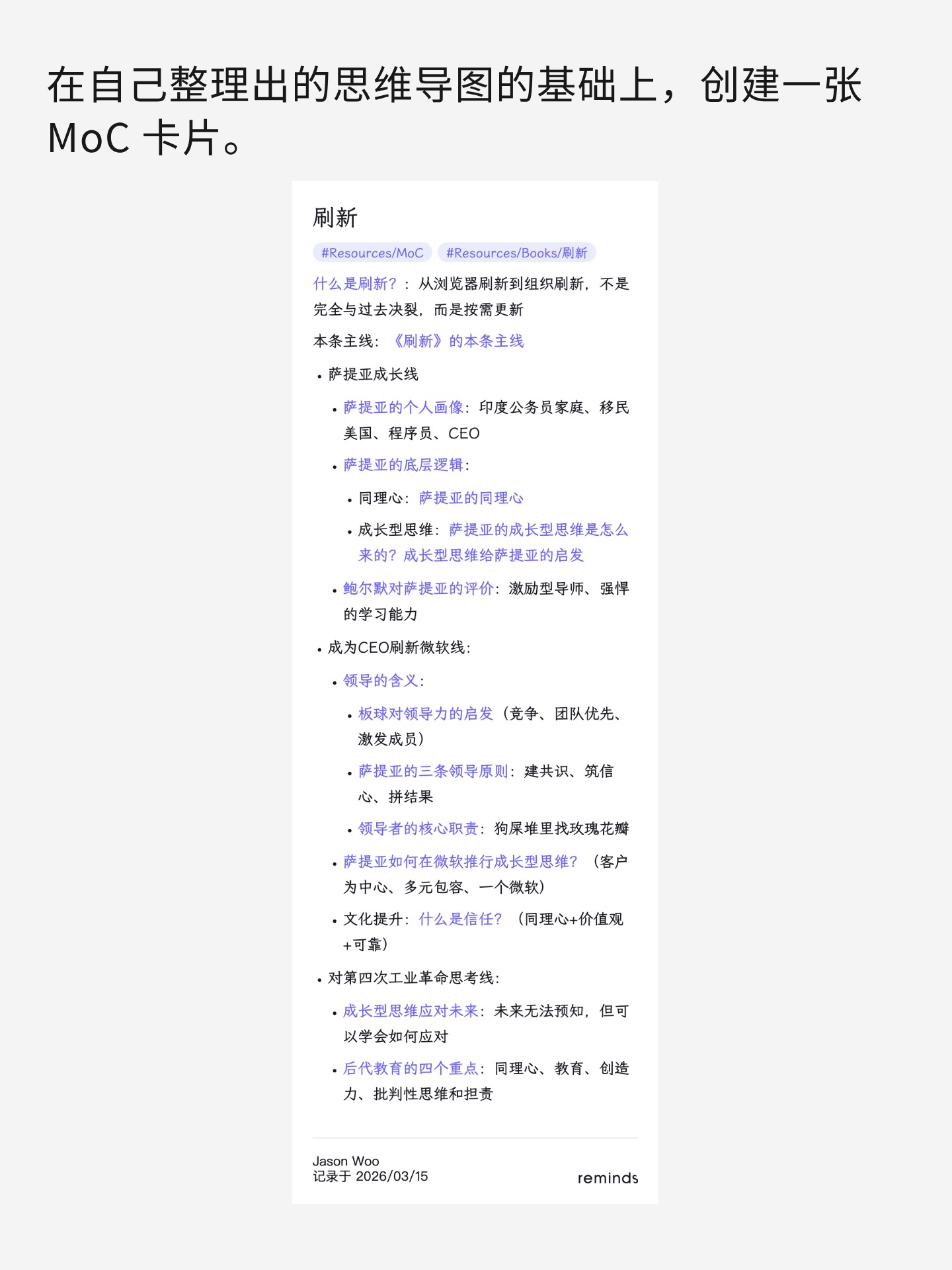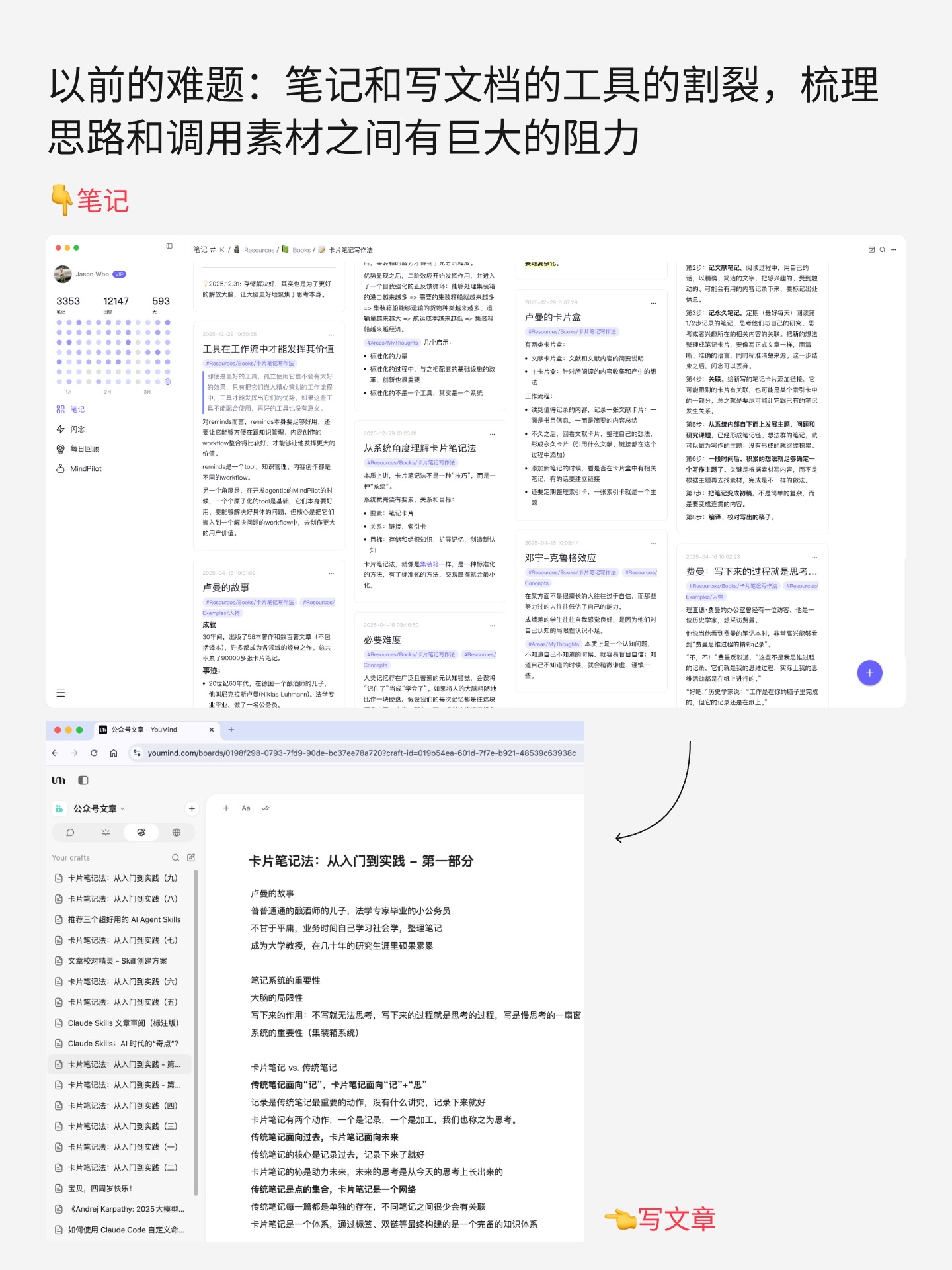 你有没有这种感觉:隐约知道自己在某个话题上积累了不少,但那些想法散落在几个月、甚至几年的笔记里,从来没有同时出现在你眼前。你无法一览全局,也理不清这个话题下,自己到底想明白了什么。