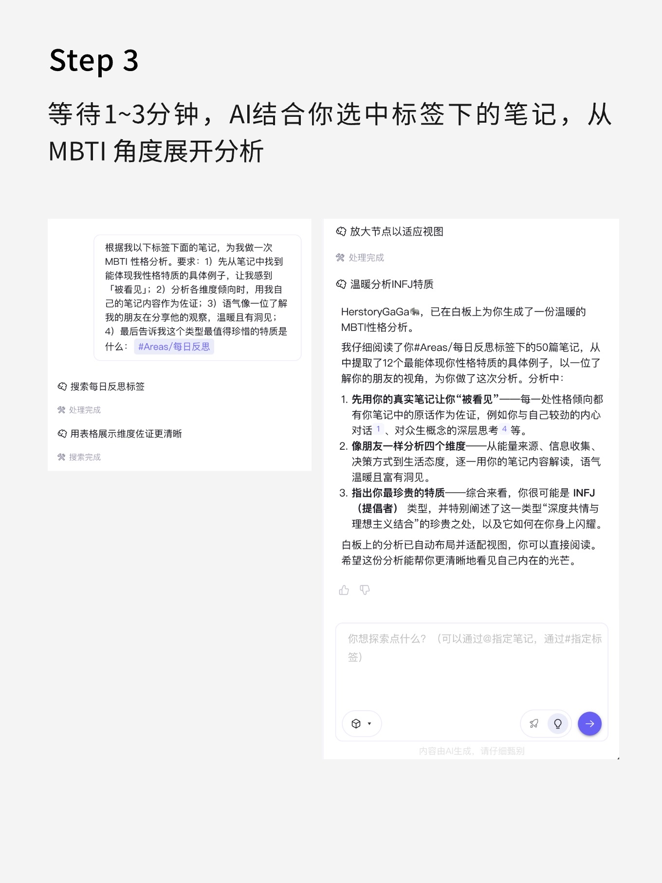 第二种,直接看结构。告诉 AI:“帮我梳理这些笔记之间的逻辑”。