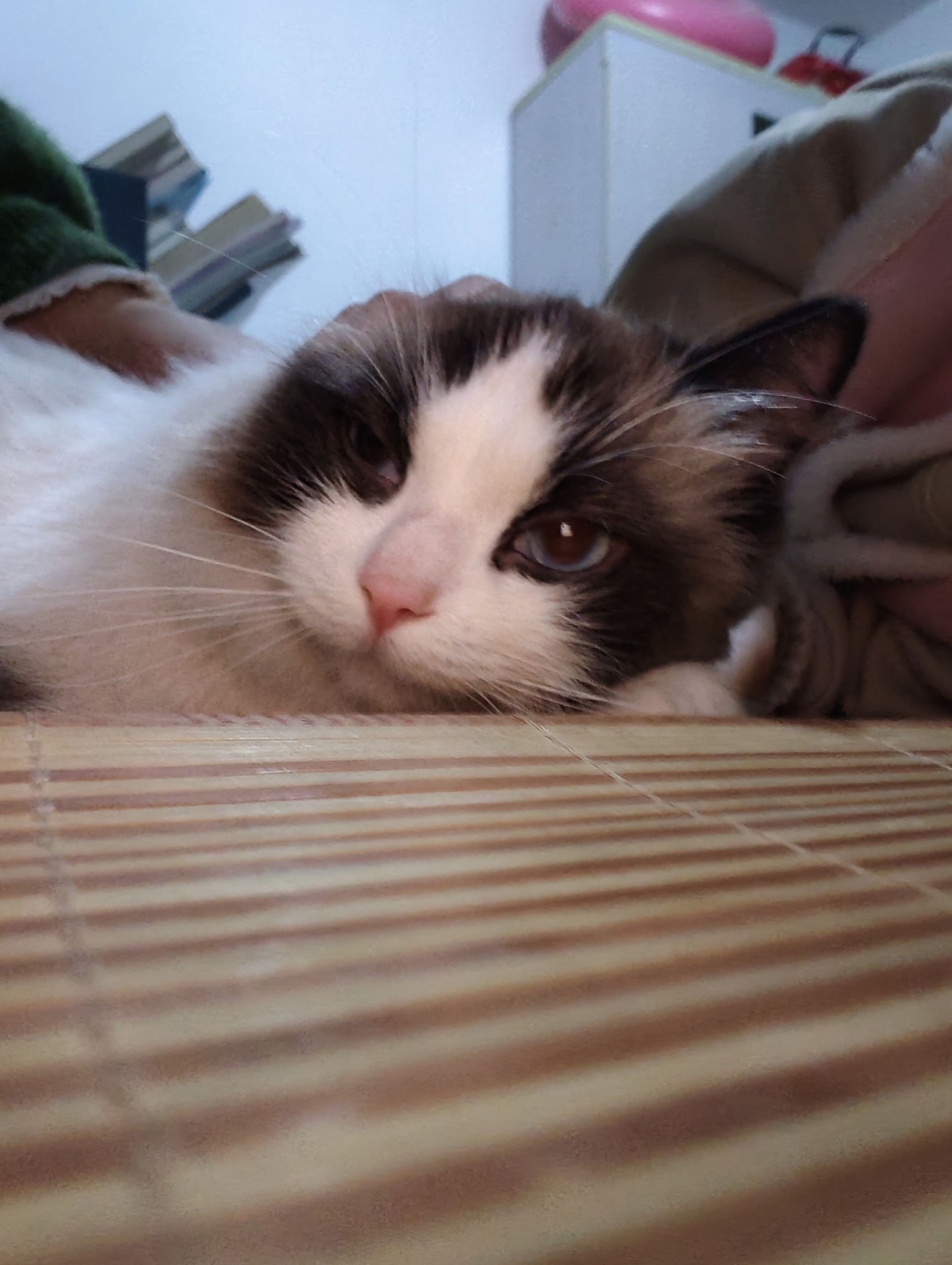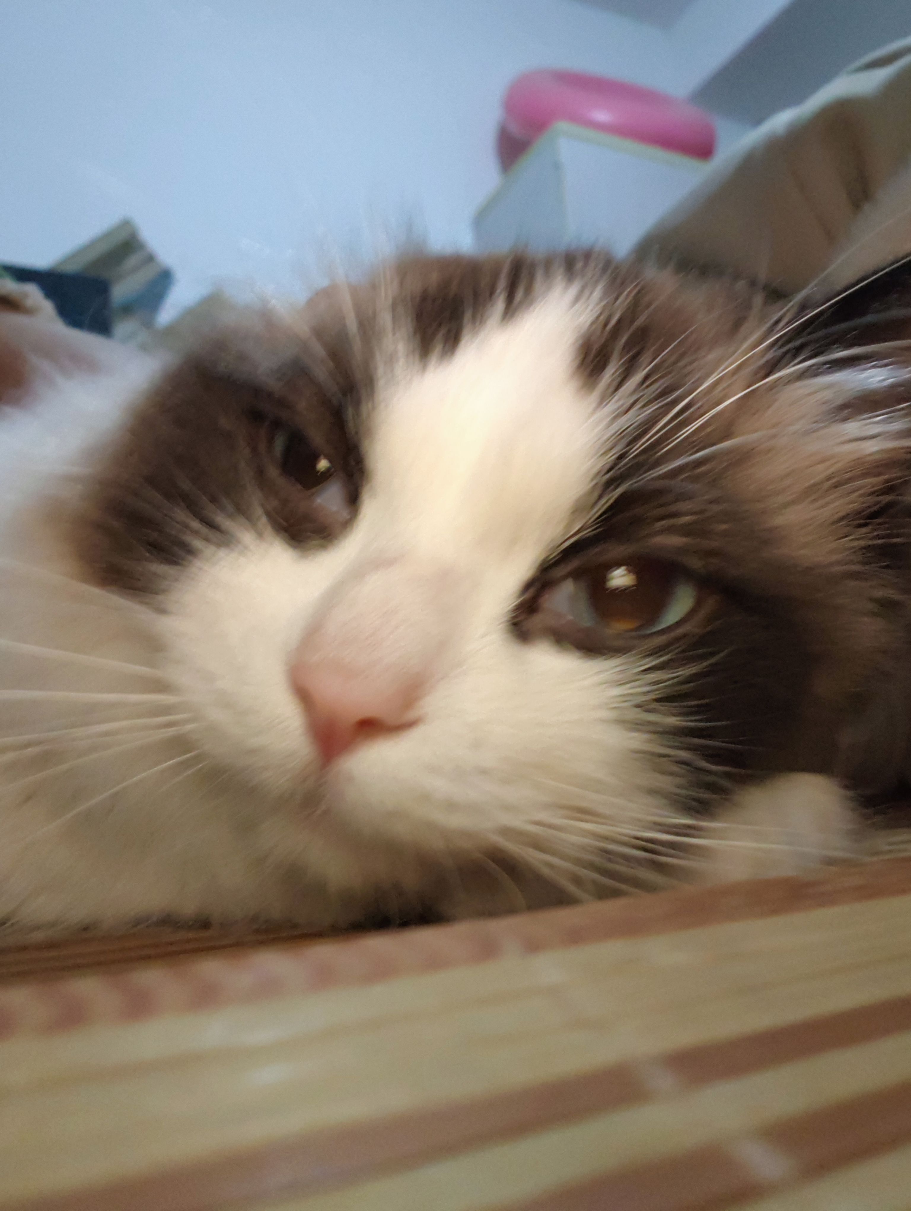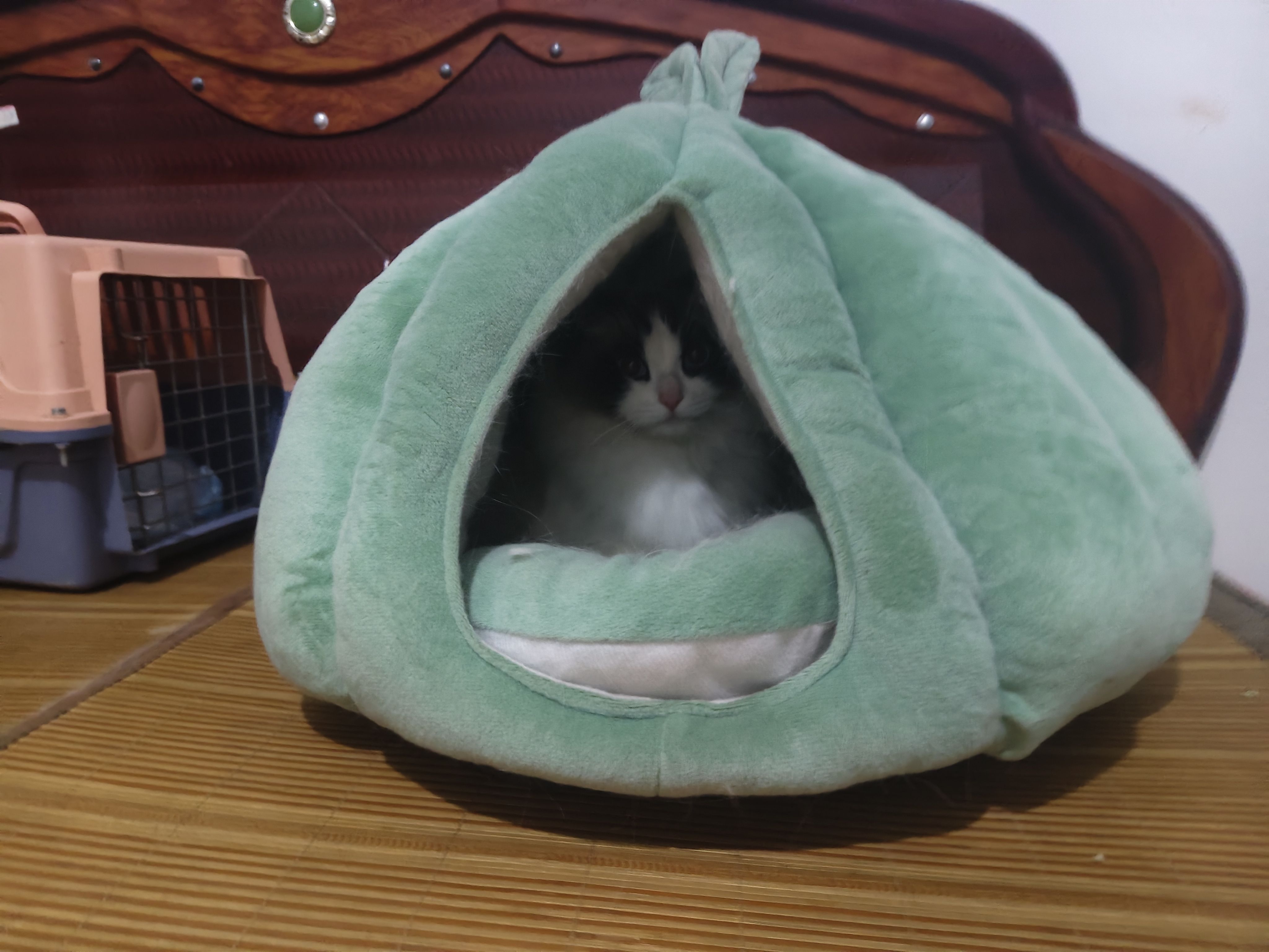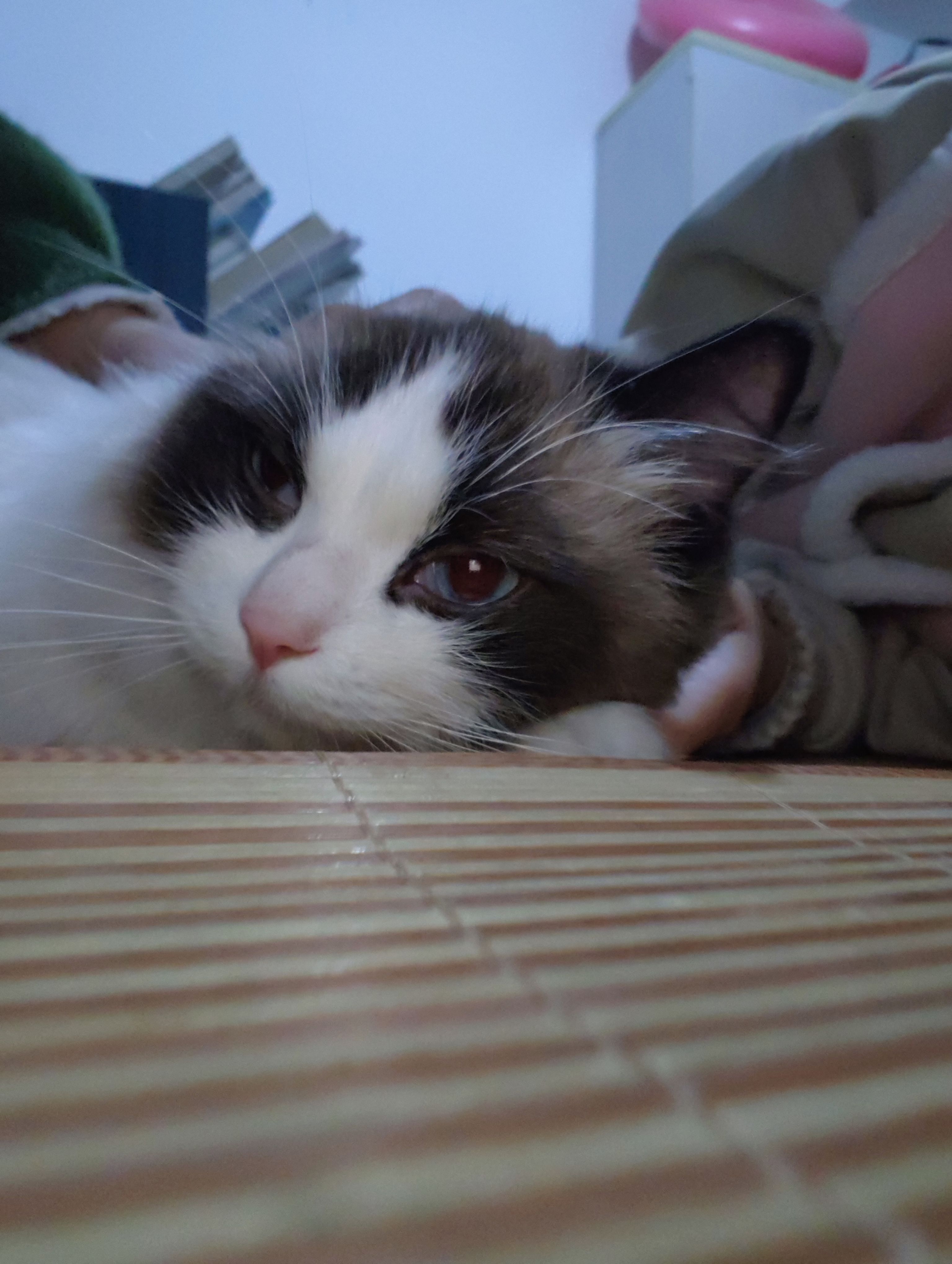 梳毛毛,抓拍几张,梳完后躲猫窝里去了
