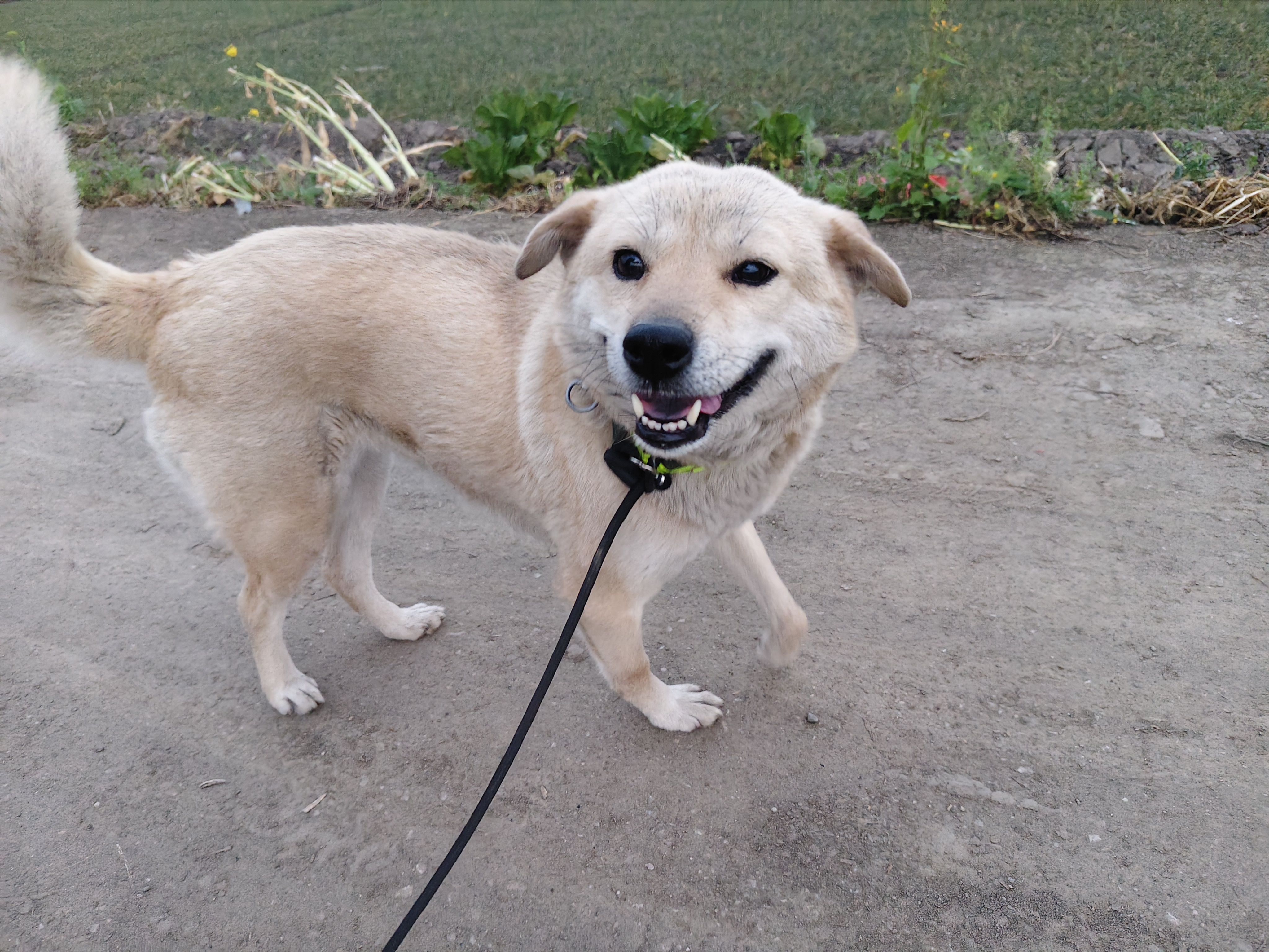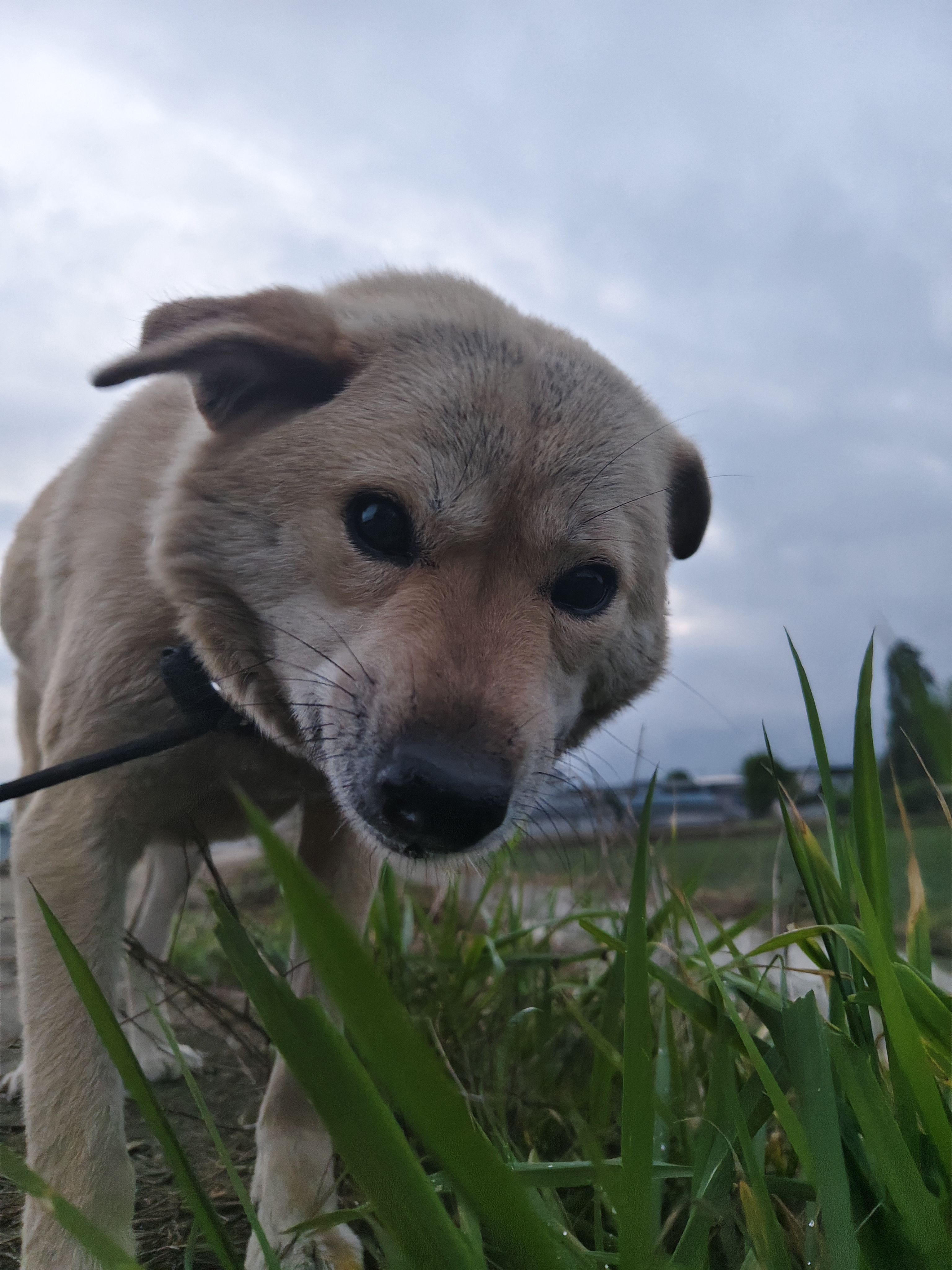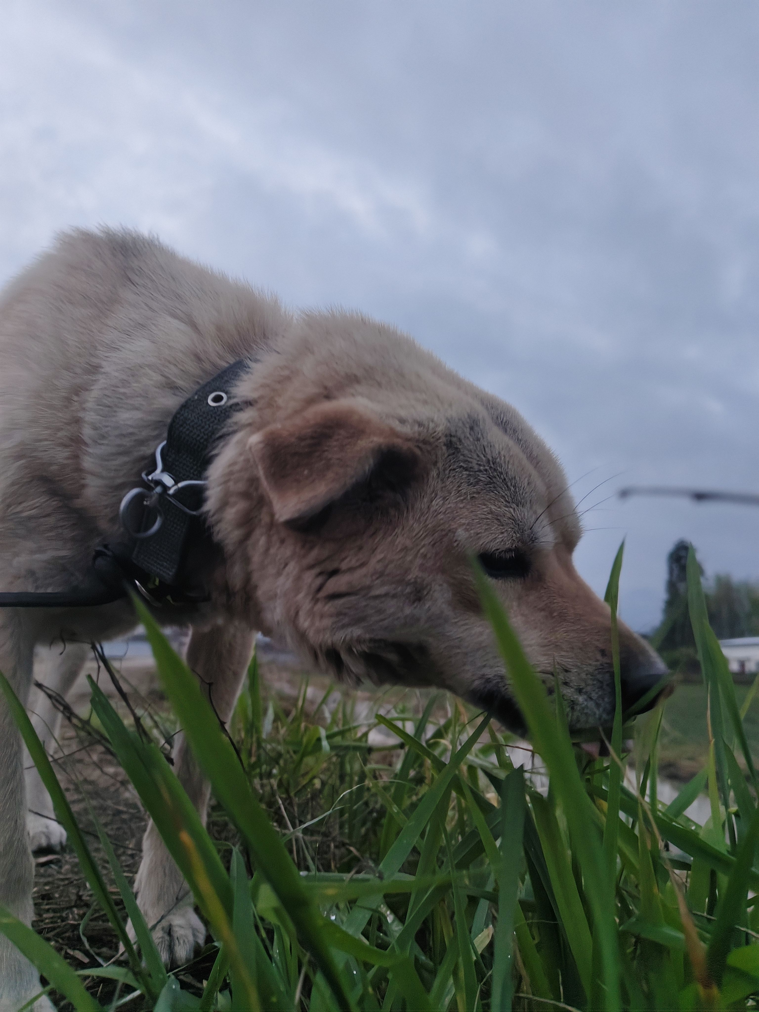 小黑在吃狗尾巴草