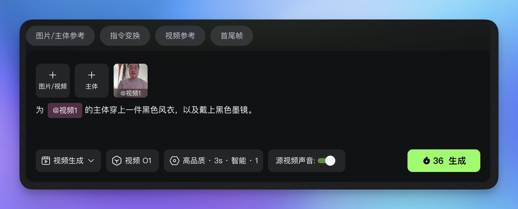 只需要上传需要编辑的视频,在提示词输入框输入提示词的时候在指代素材那里@ 对应的素材就行。