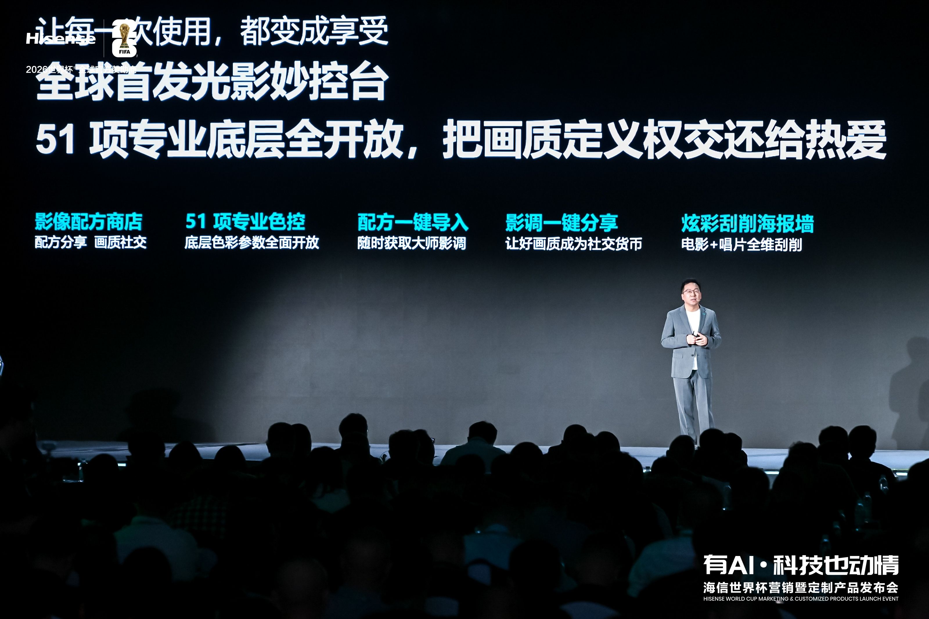 作为2026世界杯全球官方定制产品,海信UX2026款搭载行业唯一AI全景世界杯功能,覆盖赛前前瞻、赛中沉浸观赛、赛后精彩复盘全链路,打造世界杯专属沉浸式观赛体验,堪称赛事观赛顶配大屏。