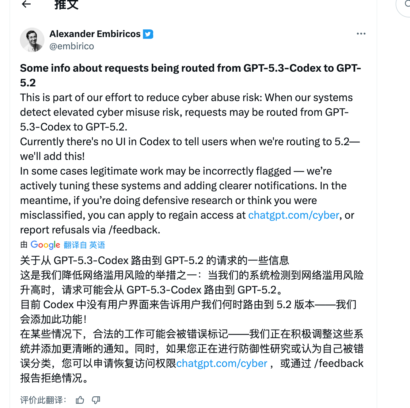 GPT-5.3-Codex 的确是一个非常棒的模型,供不应求啊。所以 OpenAI 又开启了它的大招——降智。
