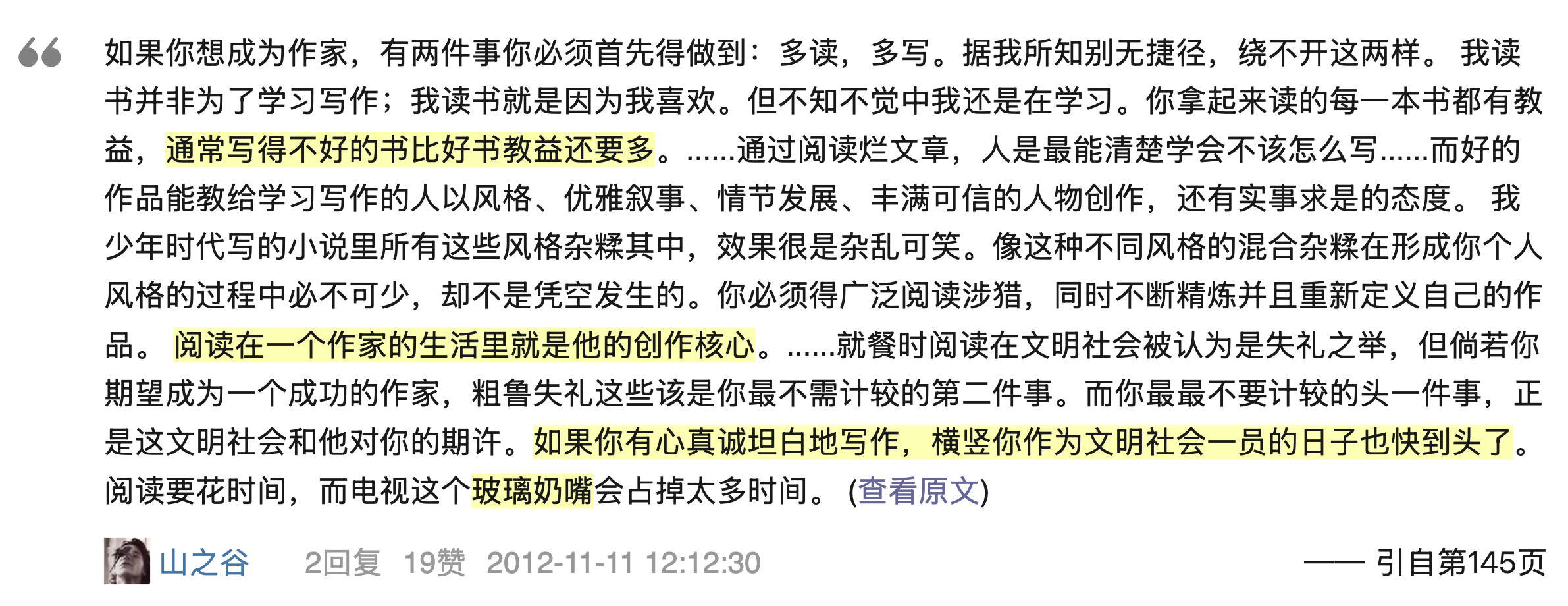 在豆瓣找Stephen King的书评,看到一段原文摘录,大作家尖锐又酸涩的评论😂现在的玻璃奶嘴已经成了短视频。