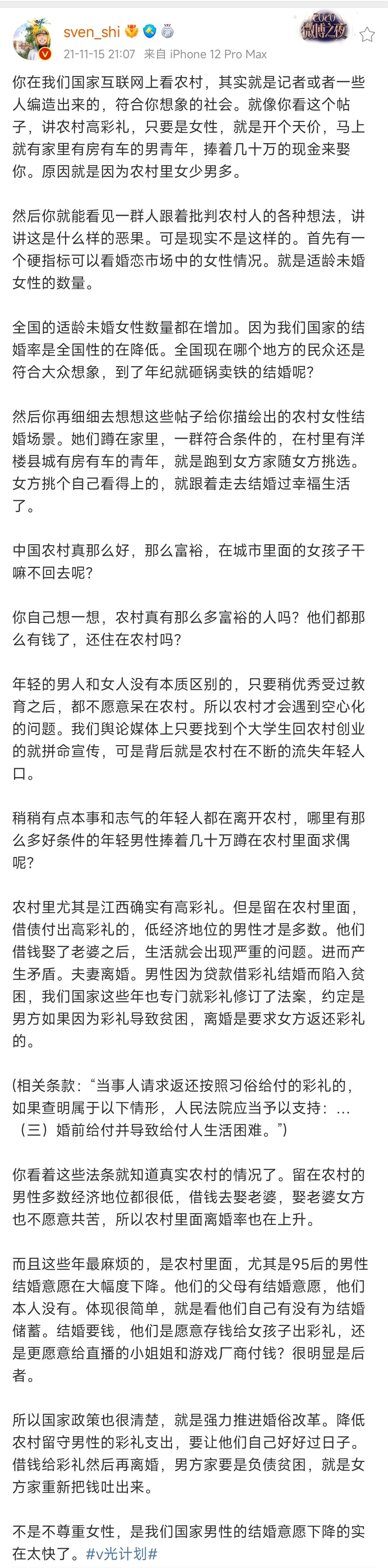 而这个想法,还会随着时间的推移和自身所处环境的变化而变化。当然男性也迷茫,所以男性就表现为对彩礼生育补偿家庭财产分配的锱铢必较。所以拨开云雾,我们可以发现,男女实际上并不对立,祂们的需求实际上是一样的,对于结婚生育有着共同的预期。