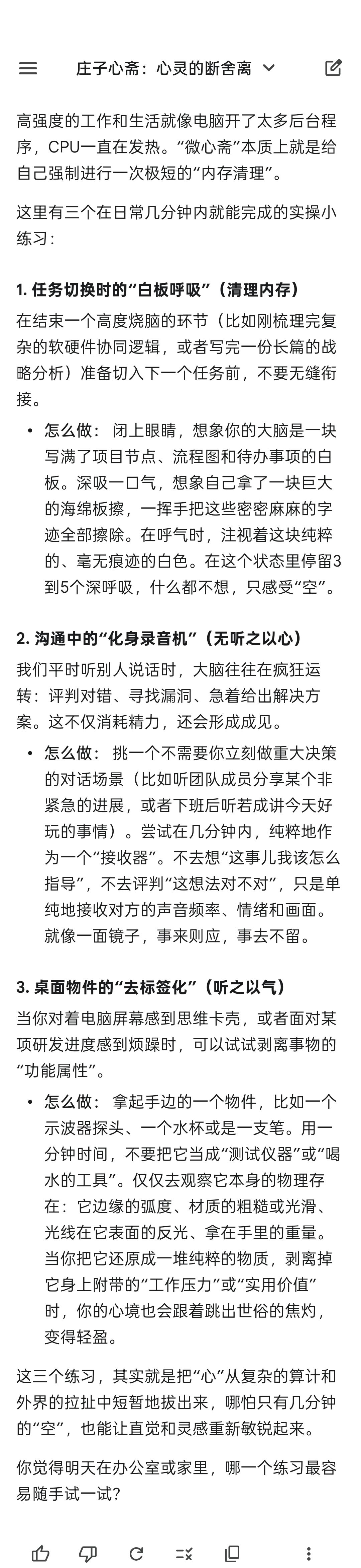 三种自由:1,自由感受而不沉溺。2,自由选择而不执着。3,自由存在而自我不定位。