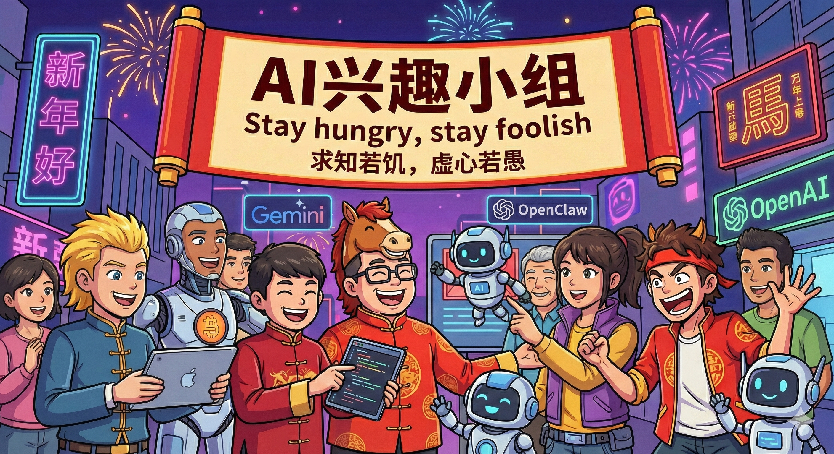 AI 兴趣小组的马年海报