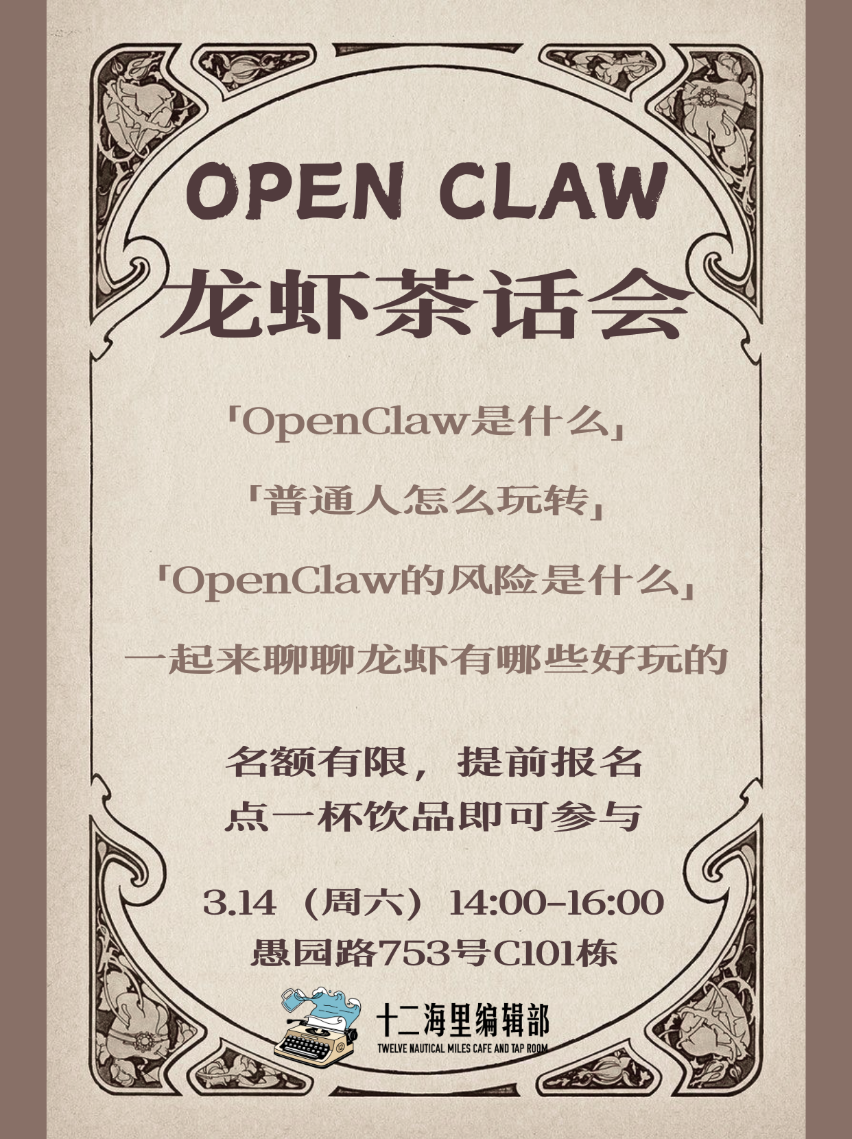 第一期在小酒馆里边喝酒边聊OpenClaw受到了大家的热烈欢迎,啤酒和深度学习超级搭的🍻~现在我们「龙虾茶话会」第二期终于来啦!