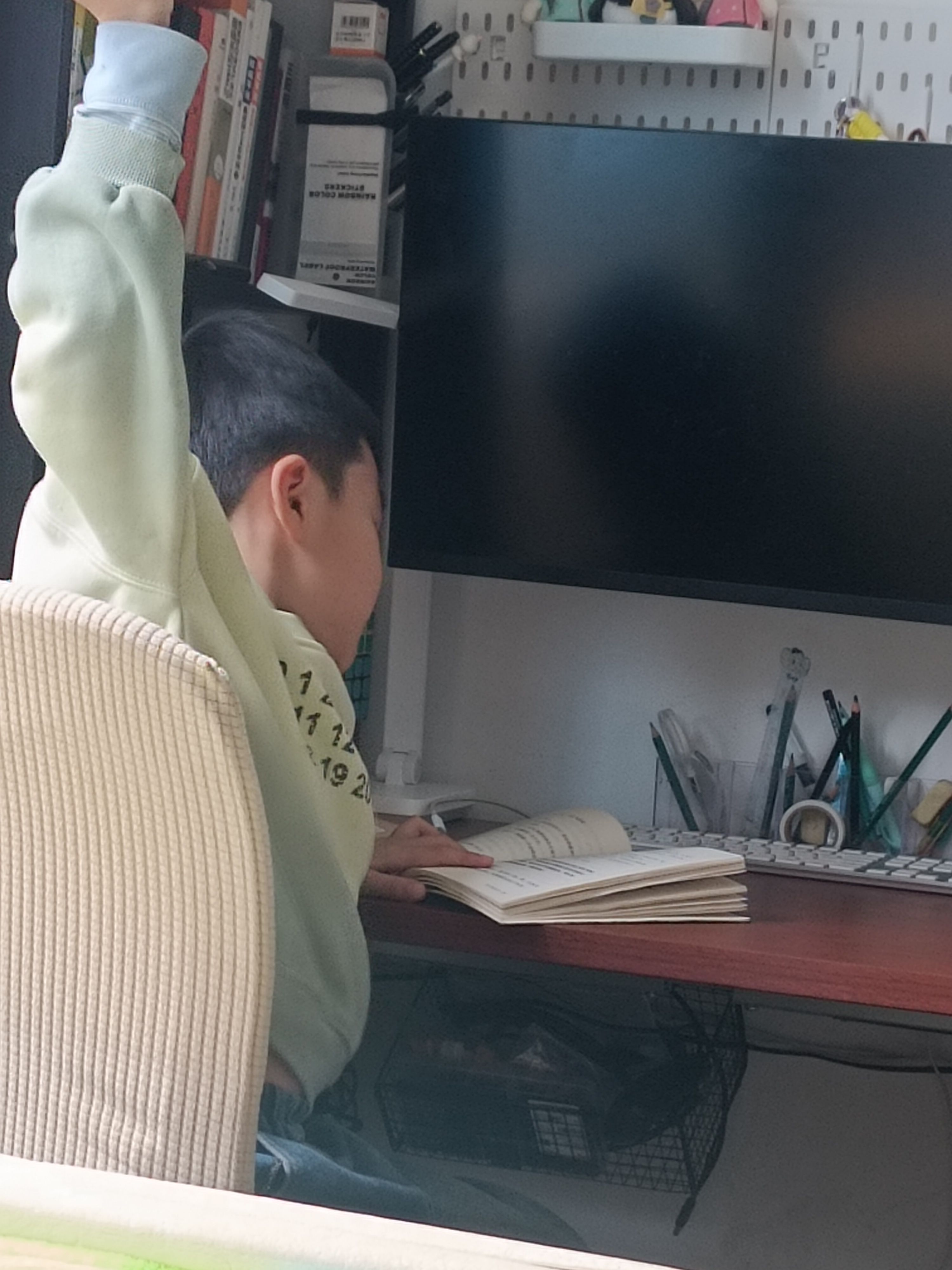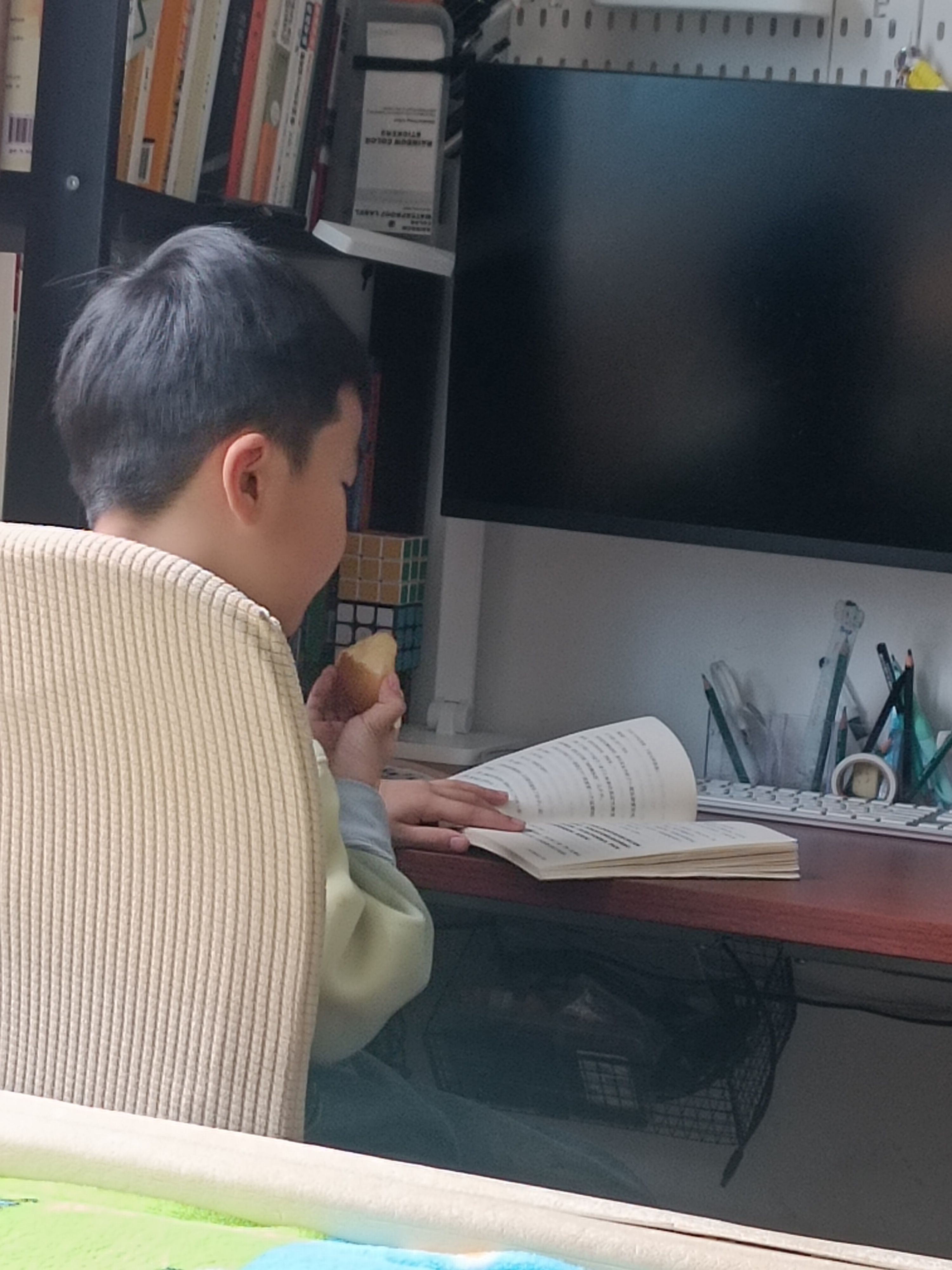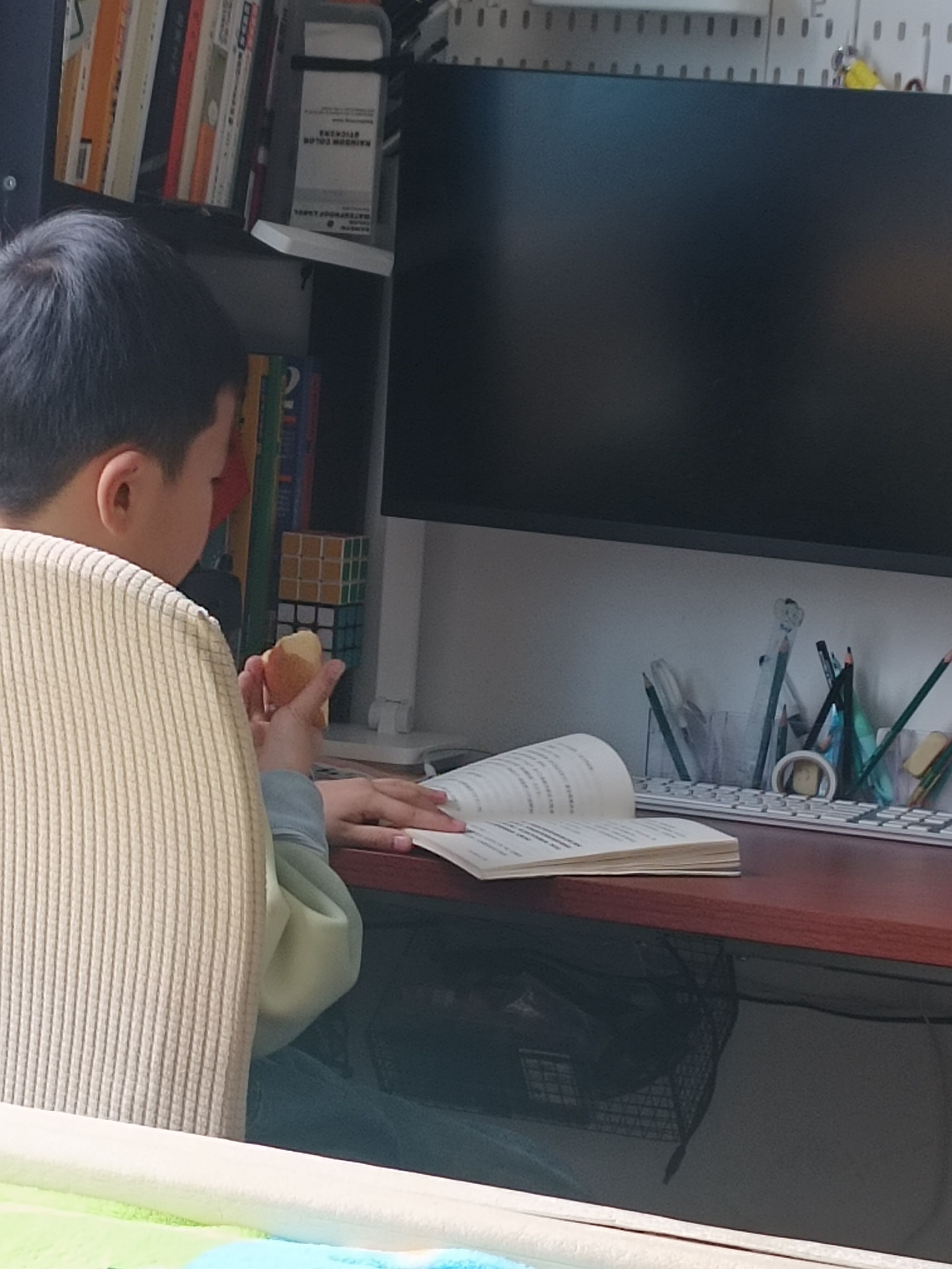 吃着苹果看着书,惬意哦!只是对刚才说过30分钟出门的事儿只字不提呀