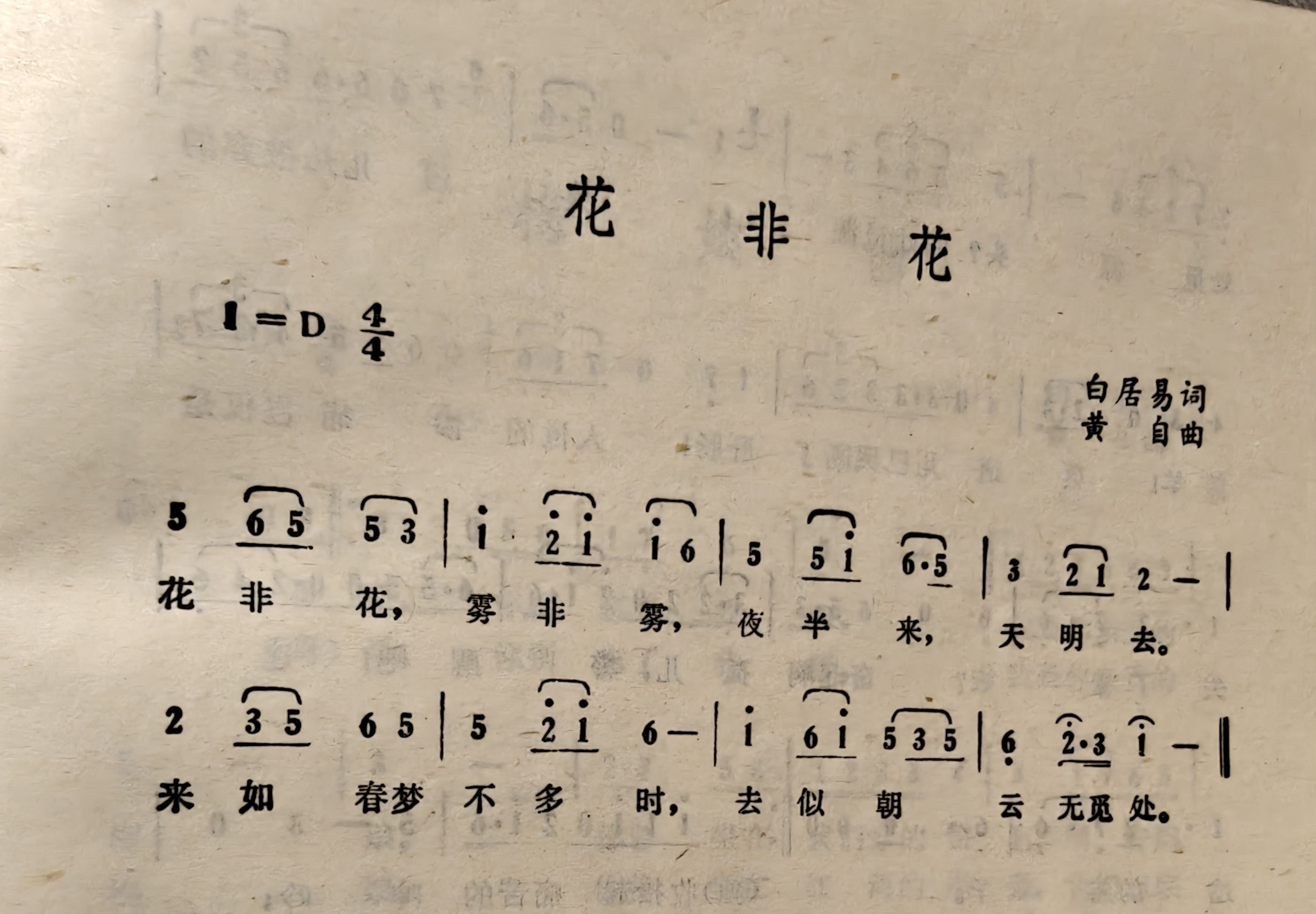 花非花,雾非雾,夜半来,天明去。来如春梦不多时,去似朝云无觅处。